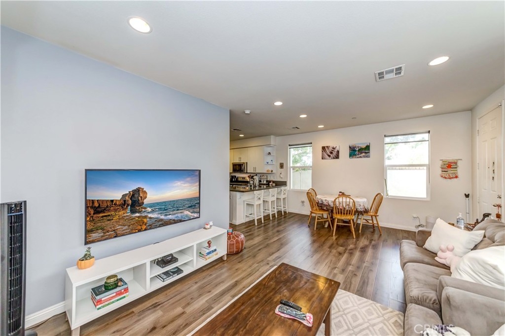 FANTASTIC TWO STORY built by the Olson Company. One of the most convenient areas in a newer development in Buena Park. Popular & desirable "Aldea Walk" gated community. Absolutely picture perfect and in immaculate condition! This delightful home is warm, inviting, comfortable with a modern TWO STORY open concept layout with no one above or below; lots of windows make it extremely light, bright & airy. Truly a superb location in tract, awesome end-unit (attached only on one side) at the western edge of the community. Three bedrooms & 2.5 bathrooms; front large porch creates a charming atmosphere and side patio to make it your own garden. Open formal living room, fabulous kitchen with Quartz countertops, upgraded white cabinets, stainless steel/black appliances and casual eating area. Powder room with a pedestal sink. Gorgeous laminate flooring and recessed lighting throughout. Handy laundry room upstairs. Sumptuous master suite with Quartz countertops, dual sinks, walk-in shower & spacious walk-in closet. Energy-efficient dual-pane vinyl windows throughout. Environmentally friendly tankless water heater. All bedrooms are generous sized. Direct access to the 2 car garage and plenty of guest parking nearby. A few steps away from a community sitting area, built with an outdoor fireplace for those chilly nights. Easily accessible with its close proximity to the 5 and 91 freeways. Low HOA Dues ($240/month). Enjoy Association BBQ area for perfect outdoor entertaining with family and friends. Walking distance to THE SOURCE MALL, close to restaurants, grocery market, parks, transportation, and golf courses.