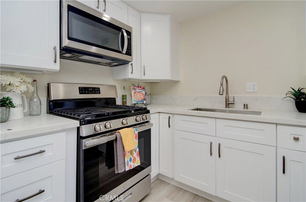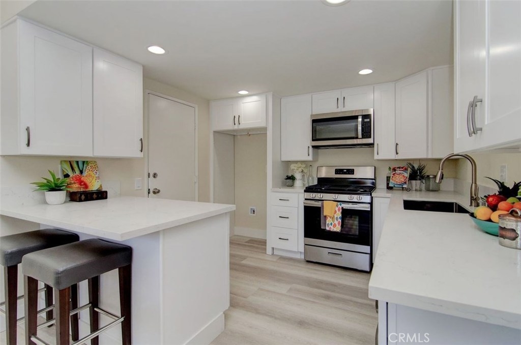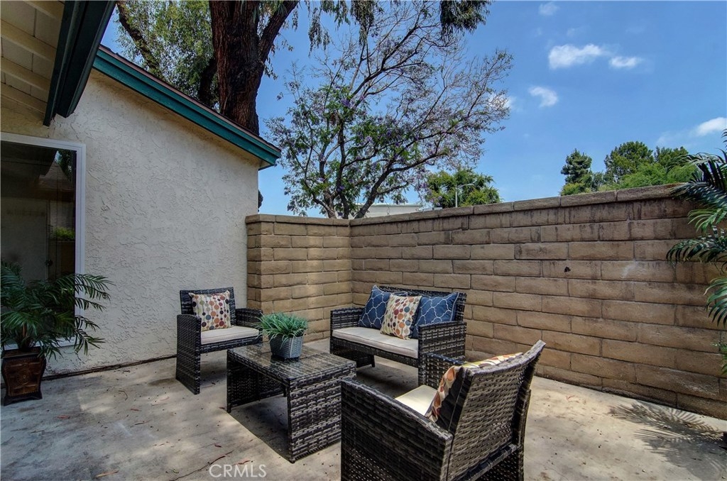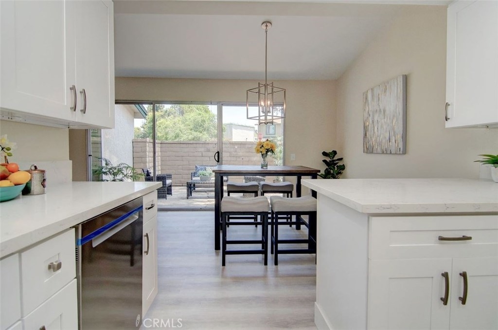 Dreaming of a single-family home at a townhouse price? You found it right here in the pride of Cameron Park! And get this: everything has just been redone, and we mean almost EVERYTHING! There is only one common wall and you're surrounded by lush greenbelts on two sides...you'll feel at home the moment you drive up. Your cars will love the oversized two-car garage with showroom floor finish and direct access to the kitchen for easy breezy delivery of groceries. You'll greet guests in the formal sunlit entry hall that leads to the great room with vaulted ceiling and huge triple wide slider to sunny, private patio. Take note of the fresh paint throughout including the custom 6 in. baseboards that finishes off the luxury vinyl plank flooring. Check out the totally remodeled kitchen with new appliances, quartz countertops and bright white cabinetry. There's even a wine / breakfast bar that opens to the formal dining area. Think of the possibilities for bedroom #3 with it's double door entry...are you thinking den or office? All bedrooms feature new dual pane windows, and large wardrobe closets, plus both bathrooms are remodeled with luxe quartz countertops, newly reglazed tub/shower and whisper quiet fans. There are so many more details, you need to come and experience them for yourself. Fantastic location with easy commute to LA or anywhere in the OC, plus great shopping close by. Welcome home!