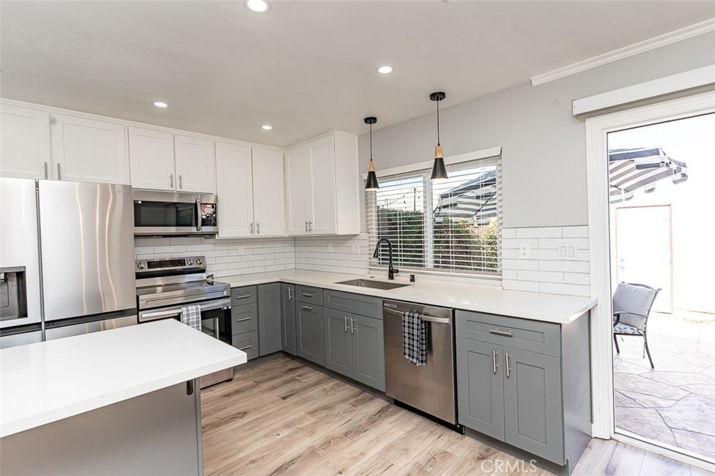 COMPLETELY UPGRADED NEW WHITE SHAKER CABINETS WITH SOFT-CLOSE DRAWERS, QUARTZ COUNTERS IN KITCHEN & BATHS,PLUS TITLE SHOWS SINGLE-FAMILY RESIDENCE (SFR) =FHA/VA ELIGIBLE,WITH NO CONDO LOAN PRICING HIT. Rare opportunity in Casitas California: this turnkey 4BR/2.5BA home has been fully upgraded in the last 2–3 years by Mastercraftship-level professionals with meticulous attention to detail, leaving nothing untouched. Gourmet kitchen features new shaker cabinets, custom Craftsman designed_uppers, expansive quartz peninsula/island, and includes stainless appliances: refrigerator, stove, microwave & dishwasher, perfect for casual dining or entertaining. Both baths are completely renovated with durable, Top-trending finishes, including an expertly installed full subway-tile feature wall, custom vanities, new tubs and toilets, and enlarged showers with elegant glass doors. Fresh designer paint, newer flooring, recessed LED lighting, and all-new-Lighting-Fixtures-throughout! Newer-dual-pane windows &-Sliding-Glass-doors=fill the home with abundant natural light, creating a bright and airy atmosphere throughout. Large private patio offers an ideal space for evening dinner parties, weekend BBQs, or relaxing in the sun, complemented by a natural gas line ready for outdoor cooking or heaters (no propane tanks needed). Oversized 2-car garage with direct access includes laundry hookups and provides plenty of storage. Every system, finish, and cosmetic upgrade has been completed recently, resulting in true turn-key quality. Residents enjoy resort-style HOA amenities including two sparkling pools, spa, clubhouse, and beautifully landscaped greenbelts. Plus-VIEWS-from-Master-Bedroom! Quiet back-center location provides peace and privacy while remaining close to Los Coyotes Country Club, premier shopping, dining, and easy freeway access. Part of the award-winning Fullerton School District, including Sunny Hills High School. This is a rare opportunity to enjoy a low-maintenance townhome lifestyle with the financial advantages of single-family home ownership, superior upgrades, and turnkey perfection.