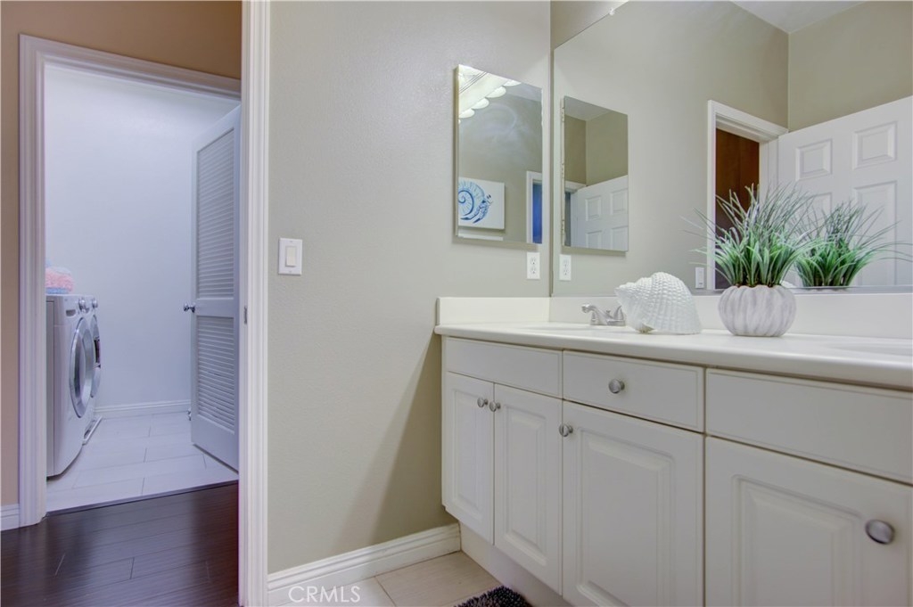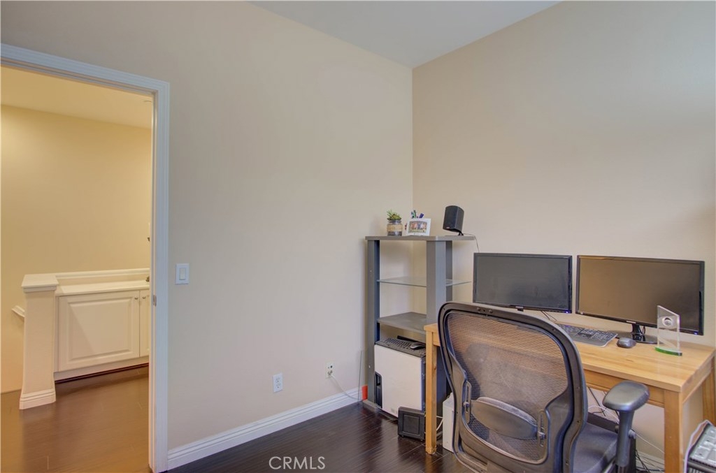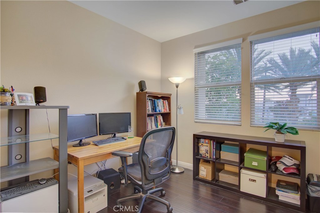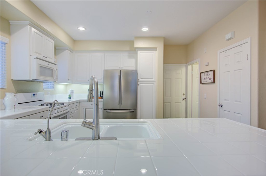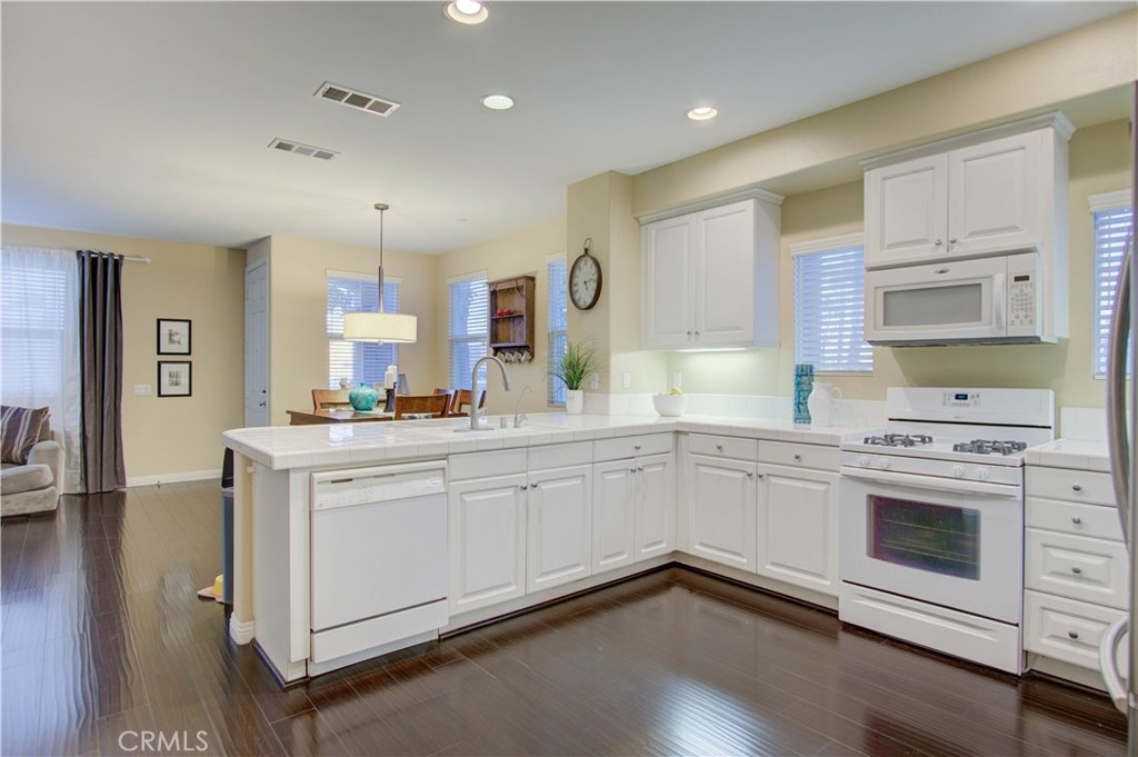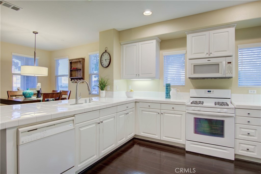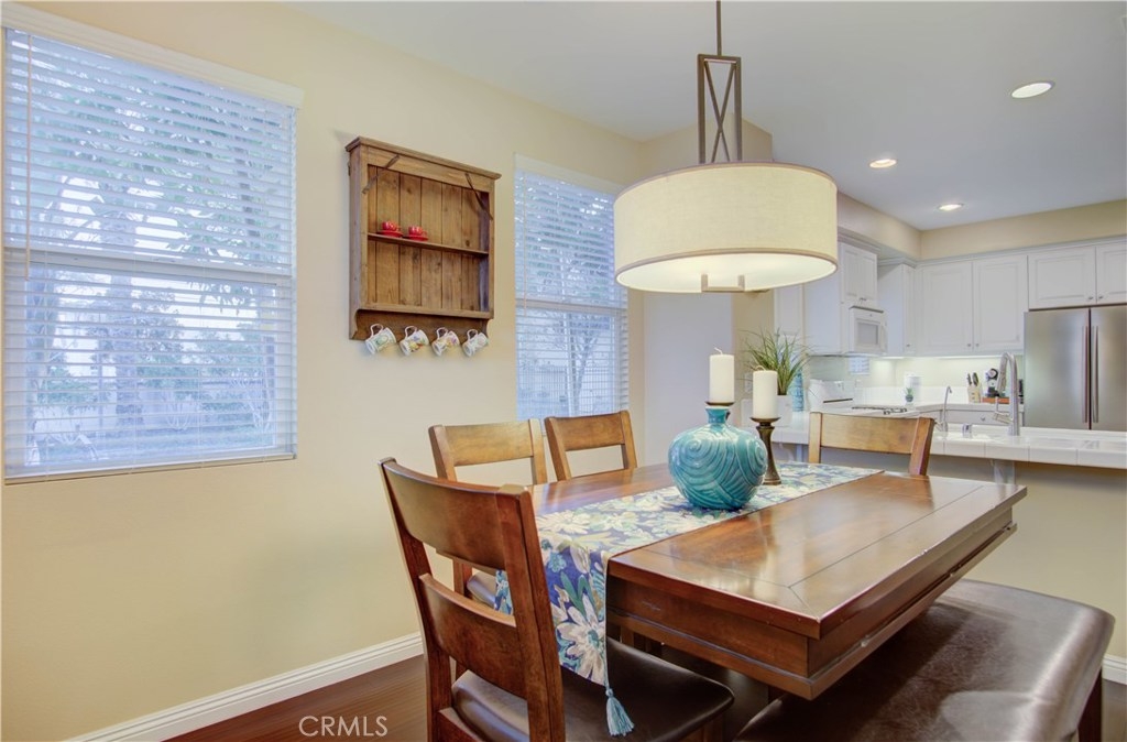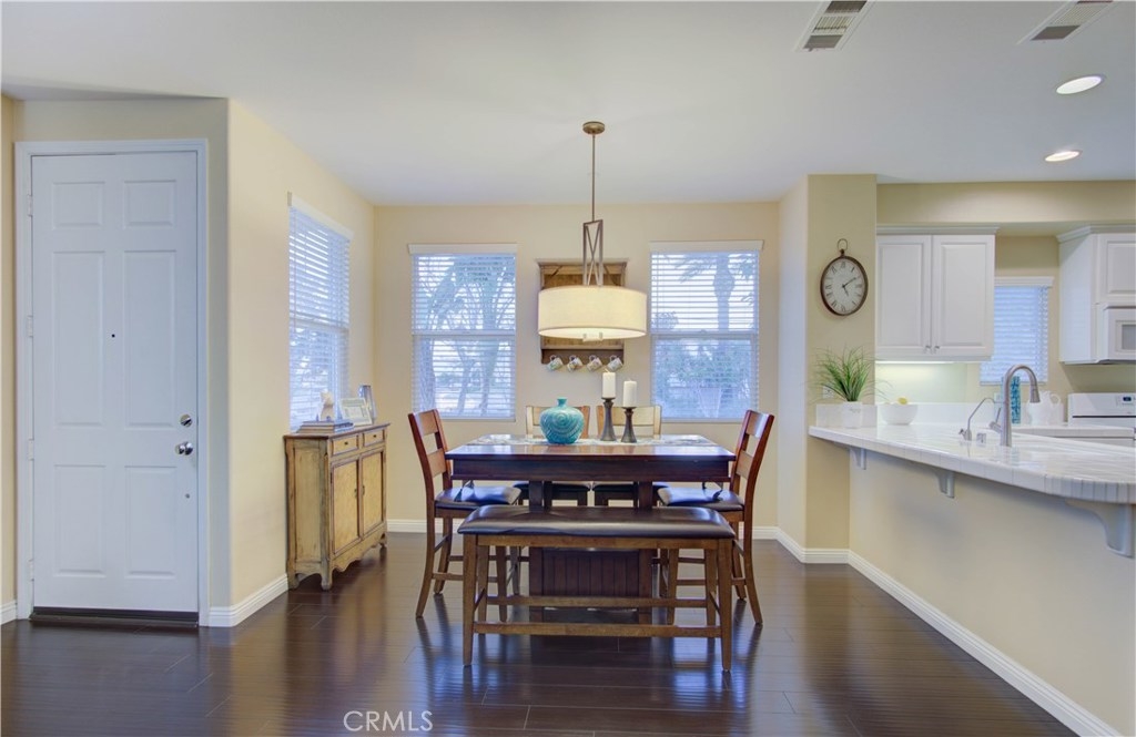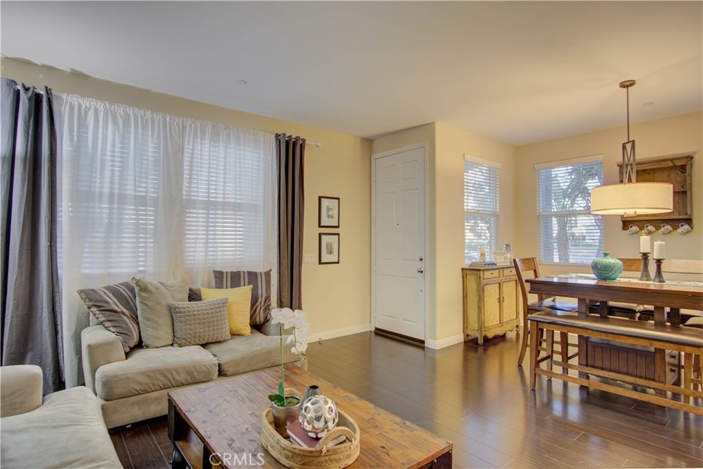 LOCATED NEXT TO A SMALL GREEN AREA WITH VIEW IN ALL SOUTH SIDE WINDOWS! One of the most convenient areas in a newer development in Buena Park. This property faces Dale Avenue. Picture perfect! Popular and desirable "Founder's Walk" newer private gated community. Quiet, relaxing ambiance and beautifully maintained by the Association. This awesome end-unit, attached only on one side, is a RARE 4-bedroom/2.5 bathroom model. This delightful two story home is warm, inviting and has a fantastic floorplan for great entertaining. Front porch creates a charming atmosphere. Host family and friends in both the upscale living and dining rooms. Lots of windows make it light, bright & airy. Open chef's kitchen with tile countertops, upgraded white color cabinets & white color appliances. Gorgeous dark color laminate flooring throughout. Powder room w/ white pedestal sink, large storage area. Sumptuous master suite w/ dual sinks, oval tub, separate shower & spacious walk-in closet. All 4 bedrooms are generous sized. Upgraded light fixtures, recessed lighting, custom painting. Handy upstairs laundry room. Direct access to the two car garage and plenty of guest parking nearby. Easily accessible and within walking distance to Metrolink -- just follow the community's exclusive gate to the Metrolink station. Enjoy Association pool, spa & lounge area. The "Beach Blvd Corridor" is close by with all its restaurants, grocery markets, parks, transportation, freeways and golf courses. IT SHOWS GREAT!