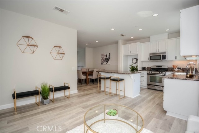 THE BEST PRICE IN TOWN!! Move-in ready upgraded townhouse in prestigious Founders Walk. It boasts an open floor plan and a fantastic location with open views. This home features 3 bedrooms, 2.5 baths, a patio, and an attached 2 car bay garage with direct interior access. Upgraded custom paint and waterproof luxury vinyl plank flooring adorned this home. The living room has a dramatic high ceiling with abounded natural light. Enjoy cooking in its spacious kitchen adjacent to the family and dining areas. The gourmet kitchen has recessed light, granite countertops, a center island, and stainless steel appliances. Upstairs offers 3 bedrooms with the master bedroom featuring a walk-in closet and a private bathroom. Double vanity, separate soaking tub & shower, and a water room complete the master bathroom. Low HOA dues include master insurance, pool, spa, playground, BBQ, picnic area, clubhouse, plenty of guest parking, and direct access to the Metrolink Station. Great schools and easy access to freeways.