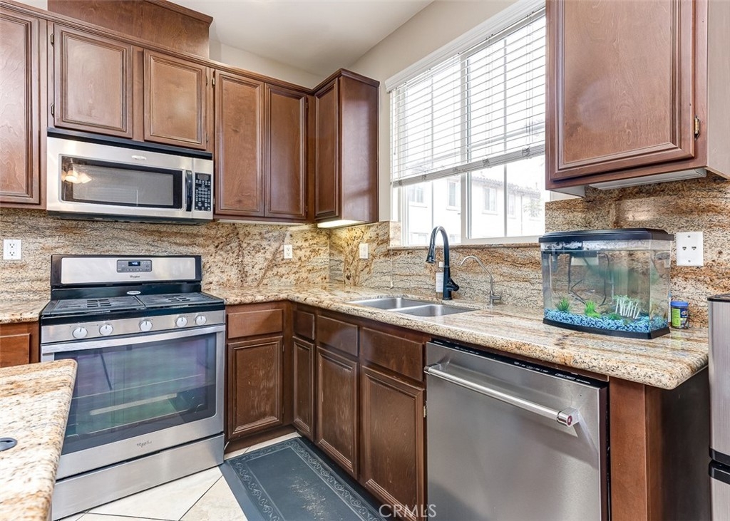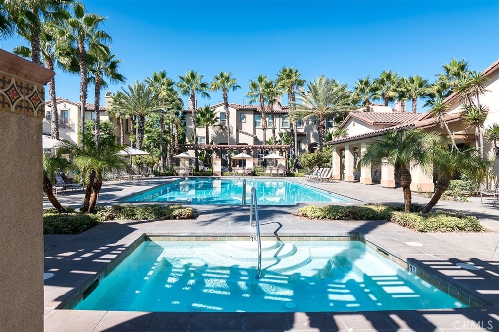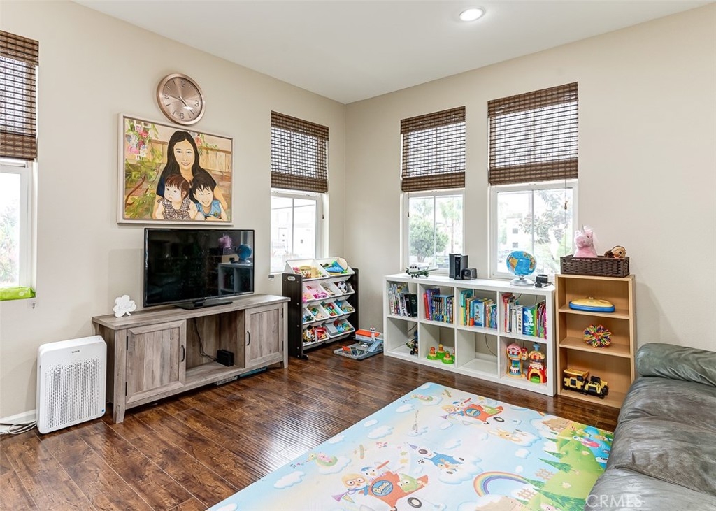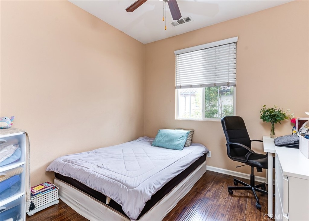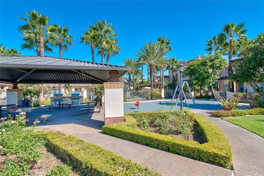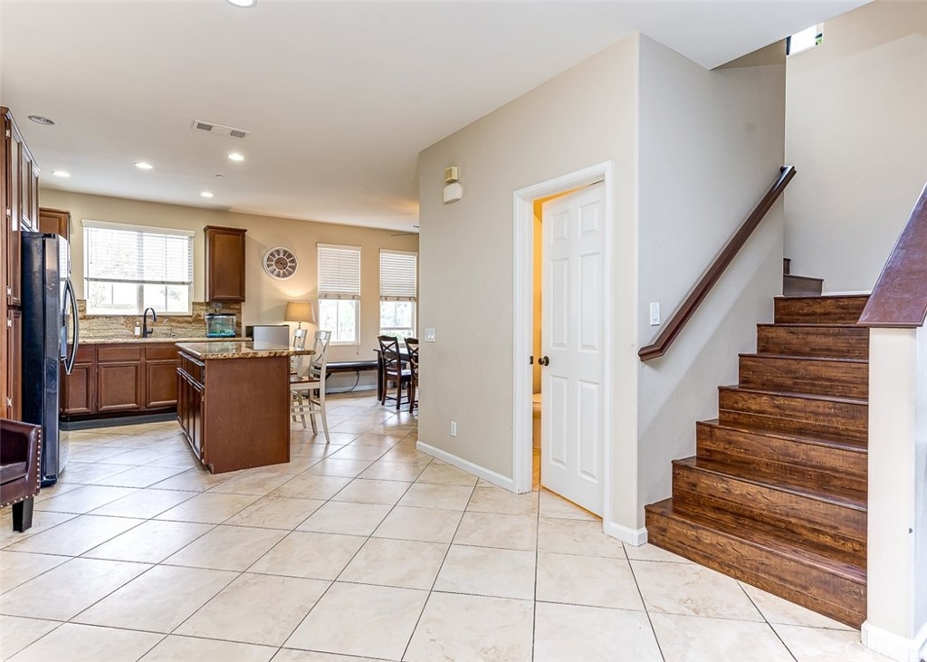 This is a multi-level, 4 bedroom, 2.5 bathroom home located in the Founders Walk community in Buena Park. The first floor features a garage and a bedroom, while the main floor includes an open kitchen and living area. The third floor has a master suite, additional bedrooms, a bathroom, and a laundry area. The community offers various amenities, such as a pool, spa/hot tub, barbecue facilities, and a playground. It is also directly connected to the Metrolink station. The house is located at the end of the community, providing privacy and beautiful views with ample natural light.