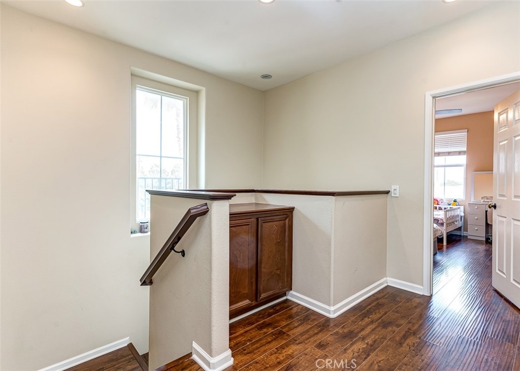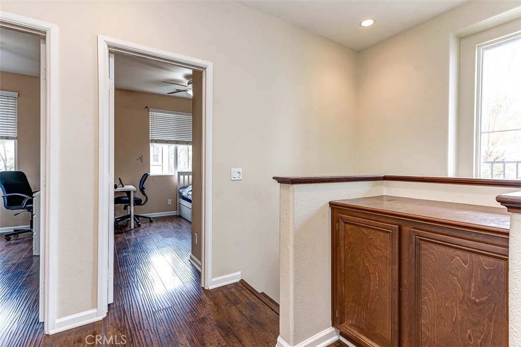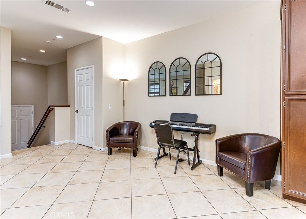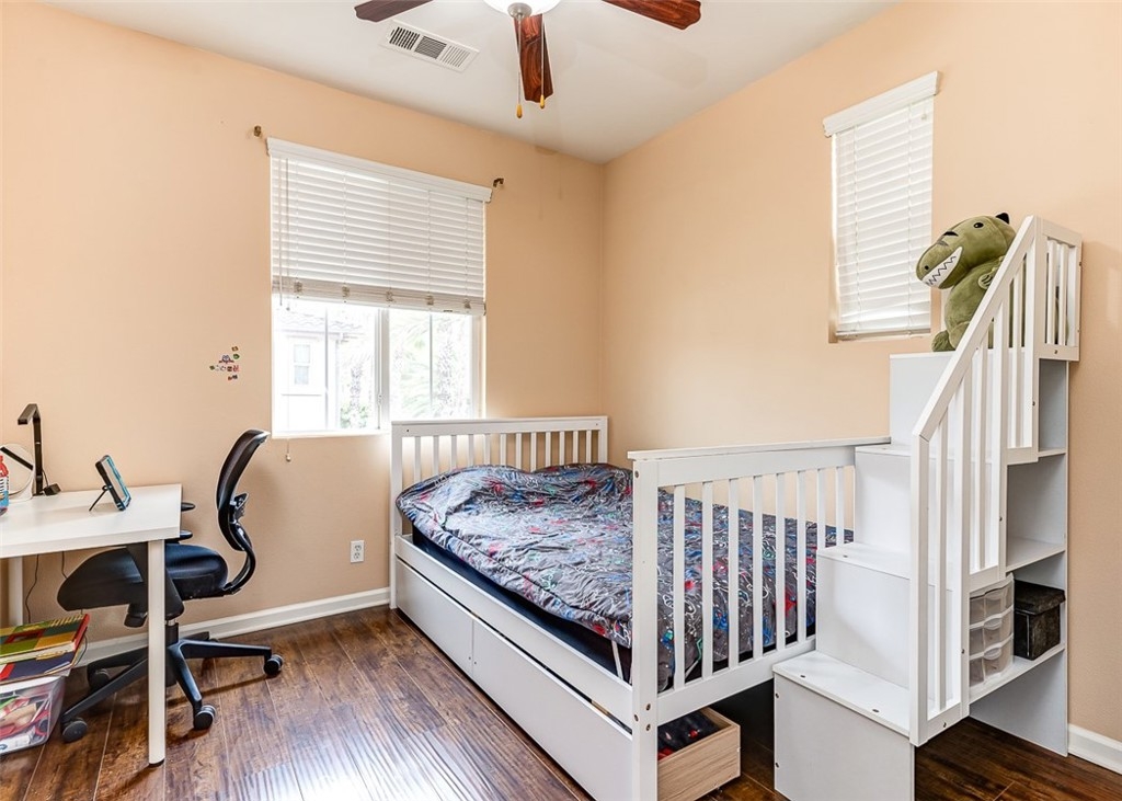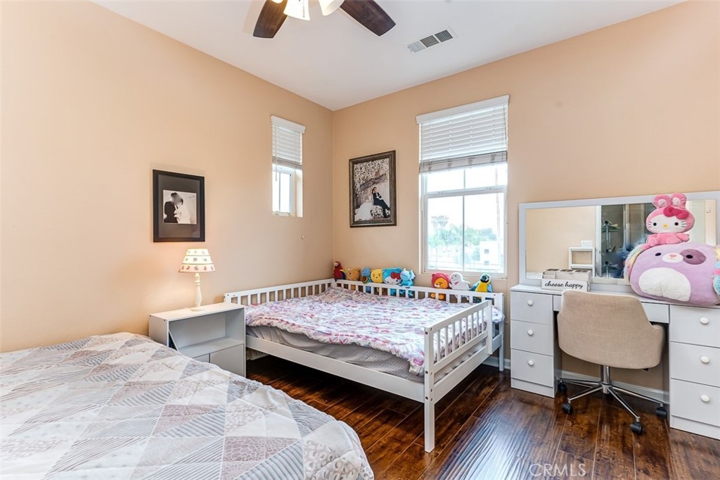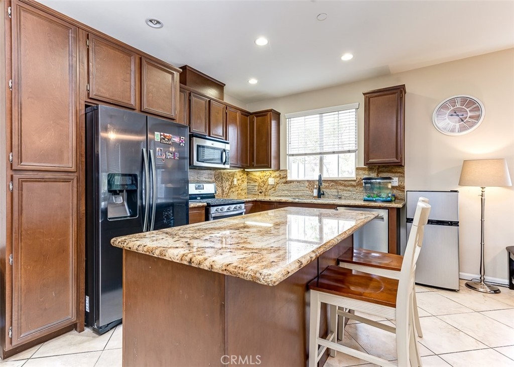 This is a multi-level, 4 bedroom, 2.5 bathroom home located in the Founders Walk community in Buena Park. The first floor features a garage and a bedroom, while the main floor includes an open kitchen and living area. The third floor has a master suite, additional bedrooms, a bathroom, and a laundry area. The community offers various amenities, such as a pool, spa/hot tub, barbecue facilities, and a playground. It is also directly connected to the Metrolink station. The house is located at the end of the community, providing privacy and beautiful views with ample natural light.