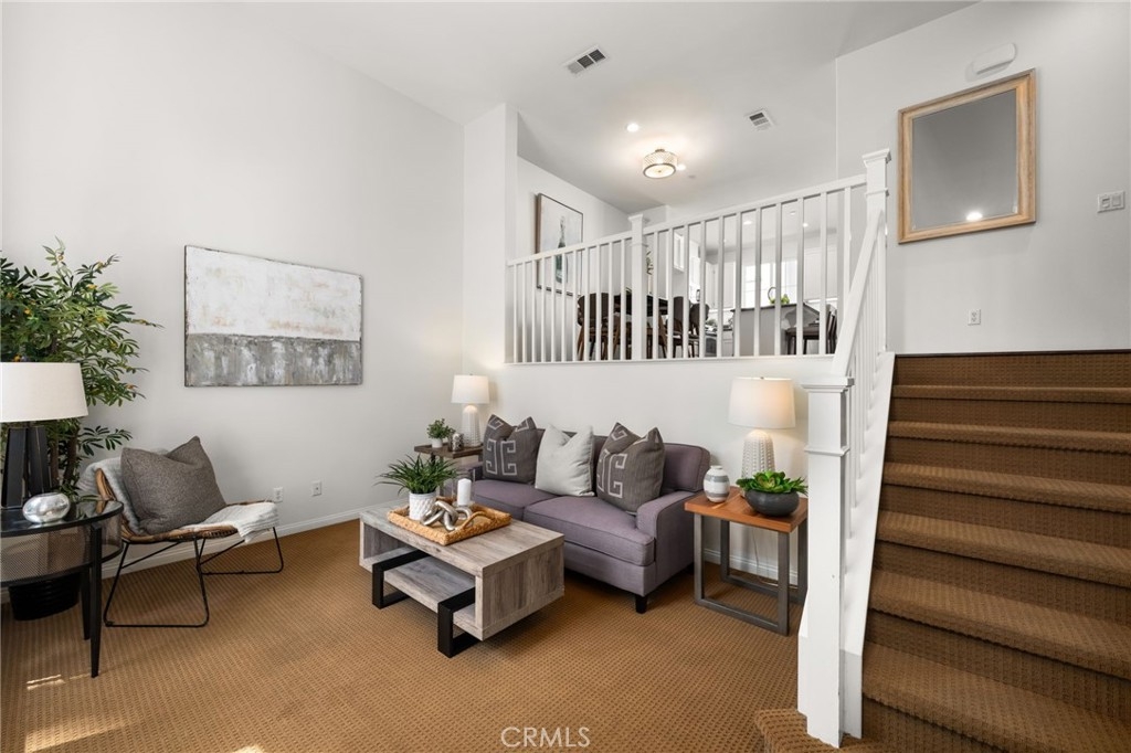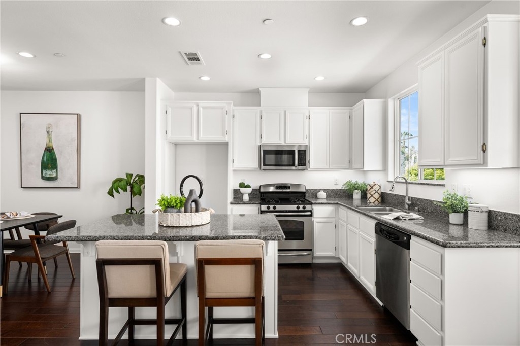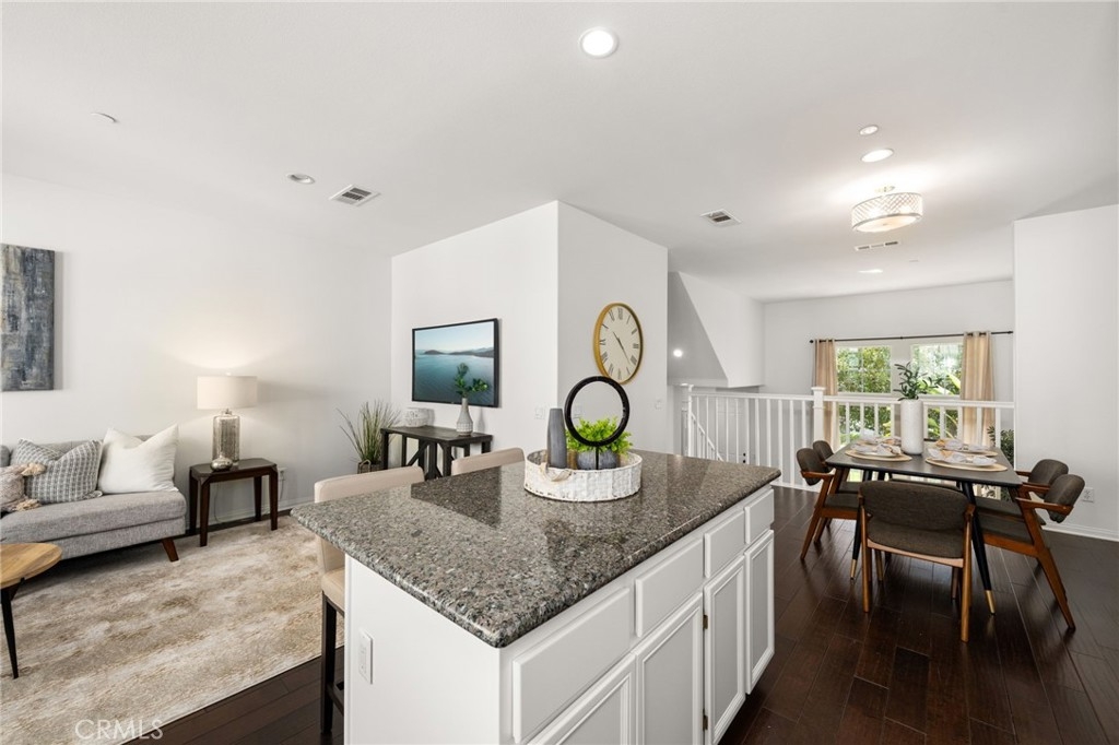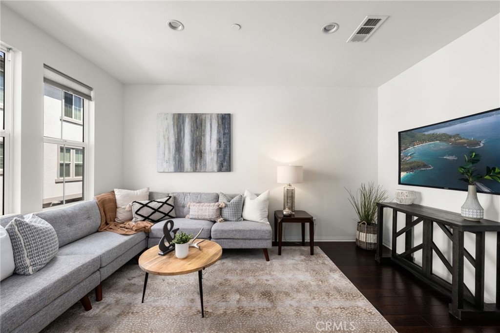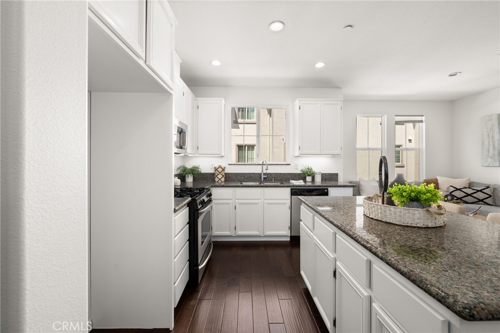 Welcome to the gated Founders Walk community and this beautifully maintained tri-level home featuring fresh interior paint, newly painted cabinets, and an inviting open floor plan accented by engineered hardwood, tile, and carpet flooring. The kitchen is appointed with granite countertops, abundant cabinetry, and recessed lighting, seamlessly connecting to the spacious living and dining areas. Additional features include dual-pane windows, central heating and air conditioning, a convenient upstairs laundry closet, and a direct-access two-car garage with EV charging. Community amenities include a pool, spa, clubhouse, BBQ grills, picnic area, playground, and direct access to the Buena Park Metrolink station. Zoned for Emery Elementary, Beatty Middle, and Buena Park High School, this home is conveniently located near shopping, dining, and the 91 and 5 freeways.