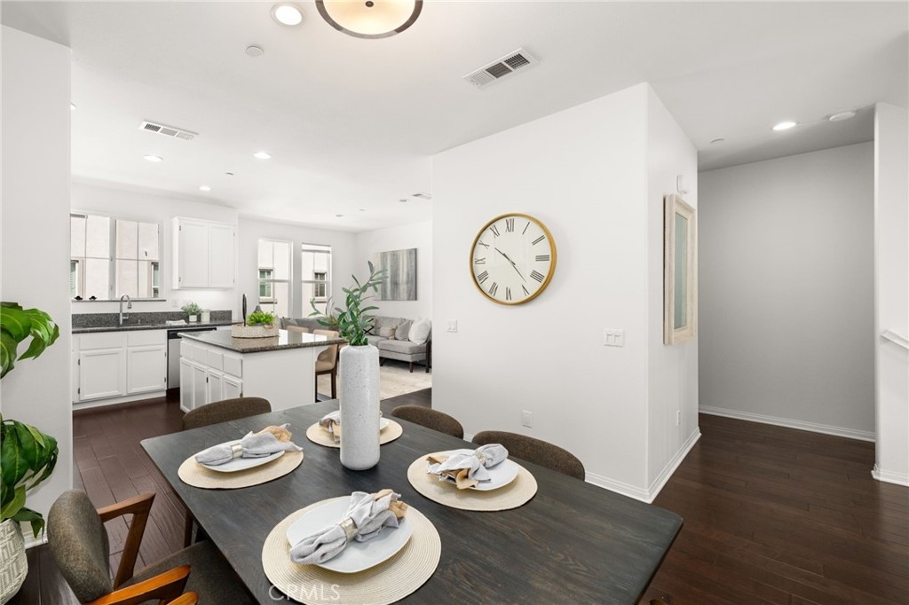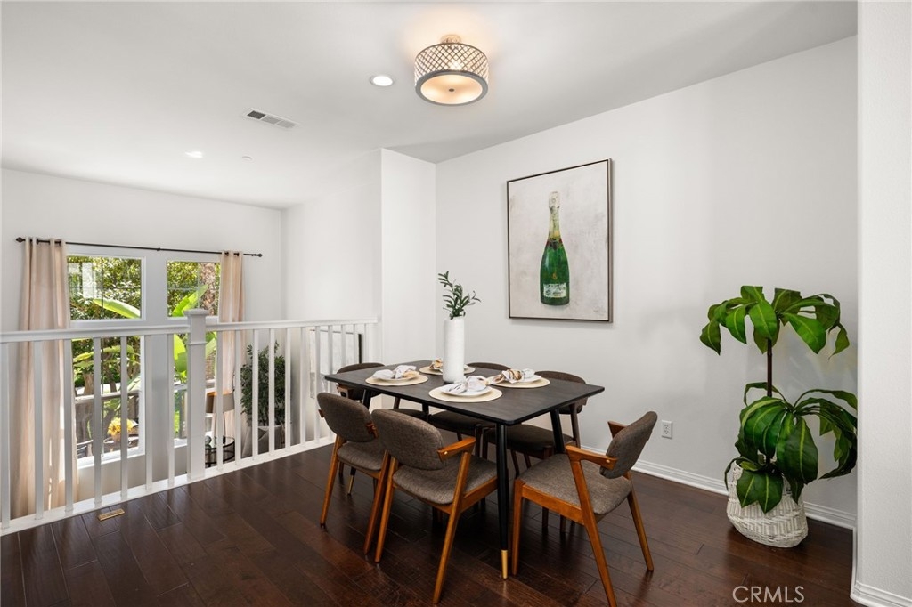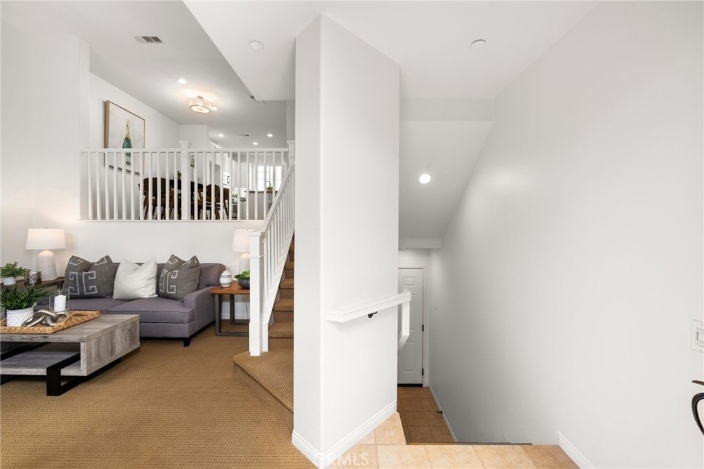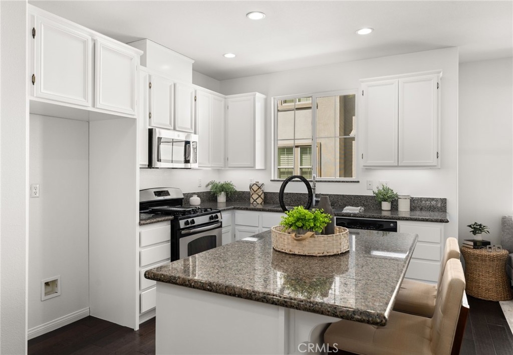 Welcome to the gated Founders Walk community and this beautifully maintained tri-level home featuring fresh interior paint, newly painted cabinets, and an inviting open floor plan accented by engineered hardwood, tile, and carpet flooring. The kitchen is appointed with granite countertops, abundant cabinetry, and recessed lighting, seamlessly connecting to the spacious living and dining areas. Additional features include dual-pane windows, central heating and air conditioning, a convenient upstairs laundry closet, and a direct-access two-car garage with EV charging. Community amenities include a pool, spa, clubhouse, BBQ grills, picnic area, playground, and direct access to the Buena Park Metrolink station. Zoned for Emery Elementary, Beatty Middle, and Buena Park High School, this home is conveniently located near shopping, dining, and the 91 and 5 freeways.