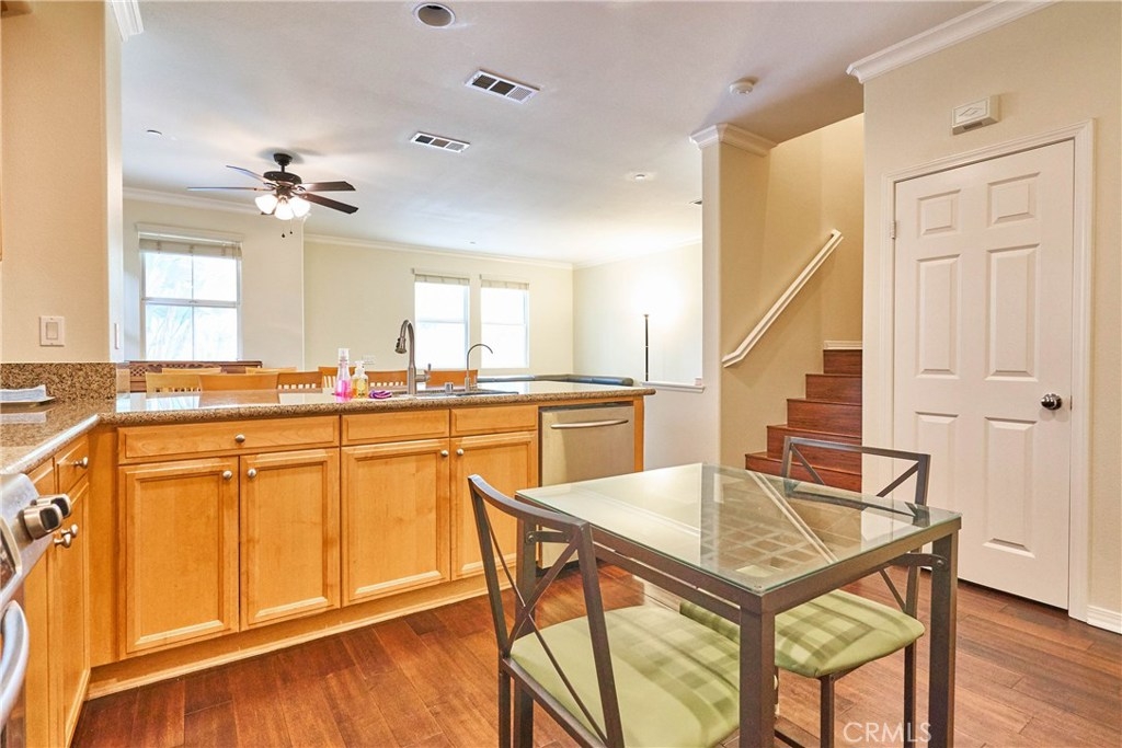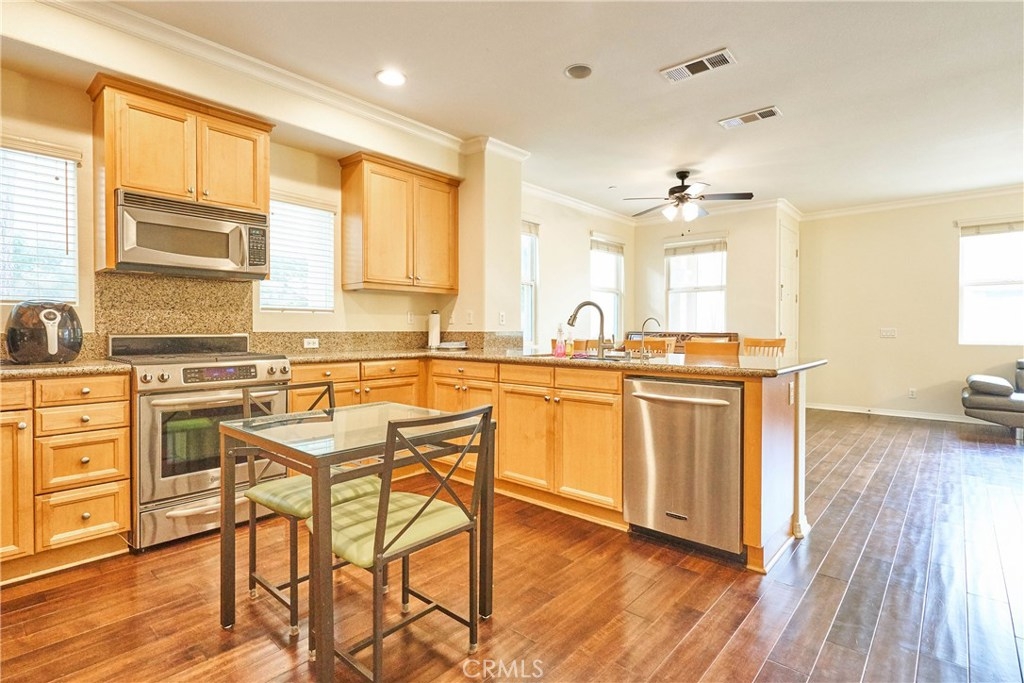 RARE TO FIND TWO STORY CONDO IN GATED COMMUNITY OF FOUNDERS WALK! THE COMMUNITY IS SITUATED IN PRIME LOCATION OF BUENA PARK, CLOSE TO THE SOURCE MALL, AMERIGE HEIGHTS TOWN CENTER, RESTAURANTS, FREEWAYS AND METROLINK. THE HOME UNIQUELY OFFERS A GREENBELT, PLAYGROUND, AND BARBEQUE AREA IN FRONT OF THE HOME, JUST LIKE HAVING YOUR OWN PRIVATE YARD. FIRST FLOOR FEATURES OPEN FLOOR PLAN OF LIVING ROOM, KITCHEN AND DINING AREA WITH BEAUTIFUL WOOD FLOORING. IT HAS GOURMET KITCHEN WITH GRANITE COUNTERTOPS AND STAINLESS STEEL APPLIANCES, LIVING ROOM AND DINING AREA WITH A LOT OF DOUBLE PANE WINDOWS, A POWDER ROOM, AND DIRECT ACCESS TO TWO CAR GARGAGE. SECOND FLOOR FEATURES 3 BEDROOMS AND A SPACIOUS LOFT WITH NEWLY INSTALLED LAMINATE FLOORING, 2 FULL BATHROOMS WITH DUAL SINKS, AND CONVENIENT UPSTAIRS LAUNDRY ROOM. HOA INCLUDES FIRE INSURANCE, ROOF, TRASH, COMMON AREA, AND RESORT STYLE POOL AND SPA, CLUBHOUSE, PLAYGROUNDS, BARBEQUE AND PICNIC AREAS, A LOT OF TREES AND GREENS, BRIDGE TO THE METROLINK STATION, PLENTY OF GUEST PARKING FOR FRIENDS AND FAMILY. YOU WILL ENJOY BENEFITS OF GOOD QUALITIES THE HOME CAN OFFER!