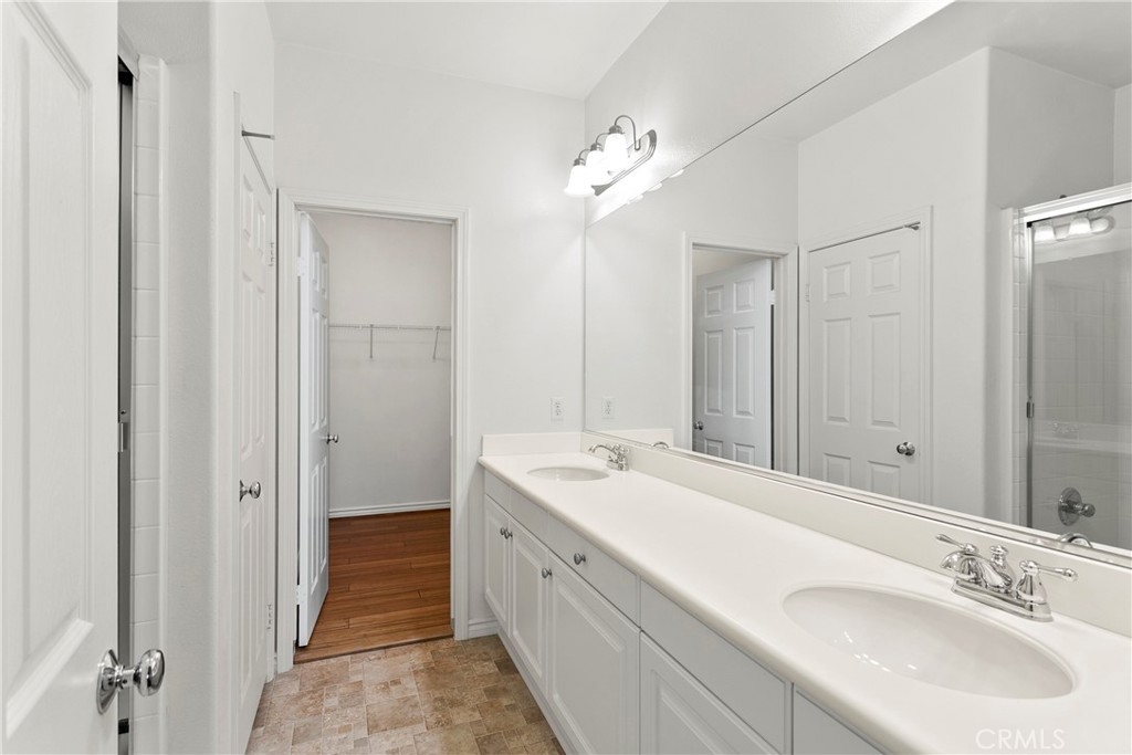 Welcome to this charming and gorgeous home located in the desirable Founders Walk gated community. This is a 3 bedroom (2 bedrooms have ensuite bathrooms) and 3.5 bath condo with a spacious living room, open kitchen, and dining area that are all located on the same level. The open floor plan attracts lots of natural light to flow through the windows. The kitchen features tile countertops, an island, and many cabinets. Additional features include recessed lighting, real bamboo hardwood and tile flooring, a ground floor bedroom and 3/4 bath, and direct access to a 2-car garage. Enjoy the association pool, clubhouse, picnic areas, and direct access to the Metrolink station. Conveniently located near the 5 and 91 freeways, restaurants, and shopping centers.