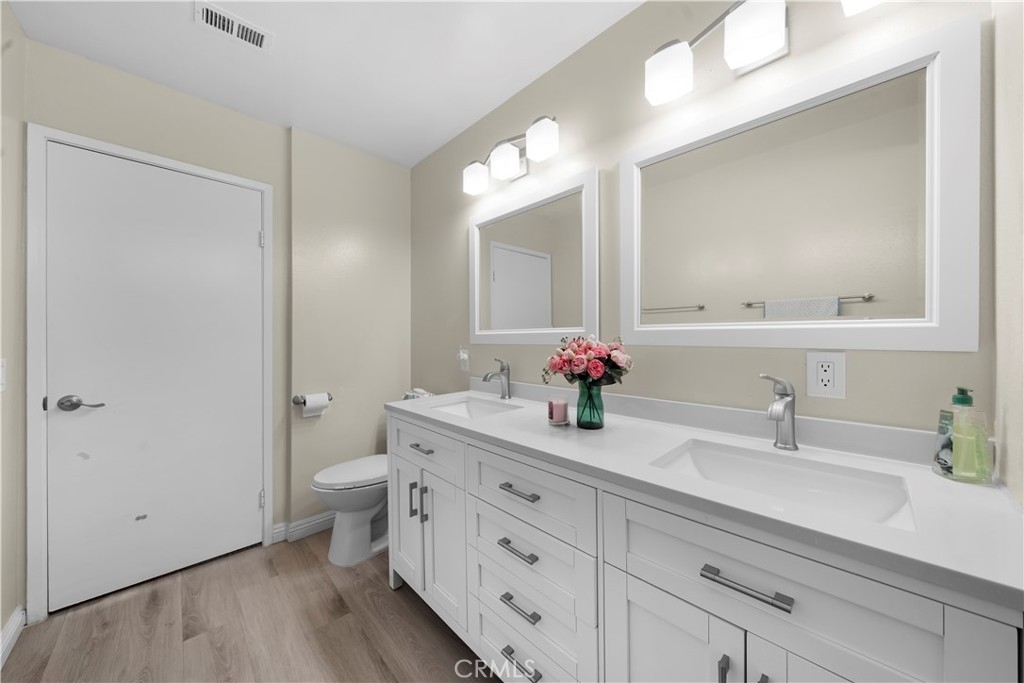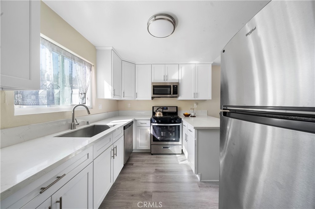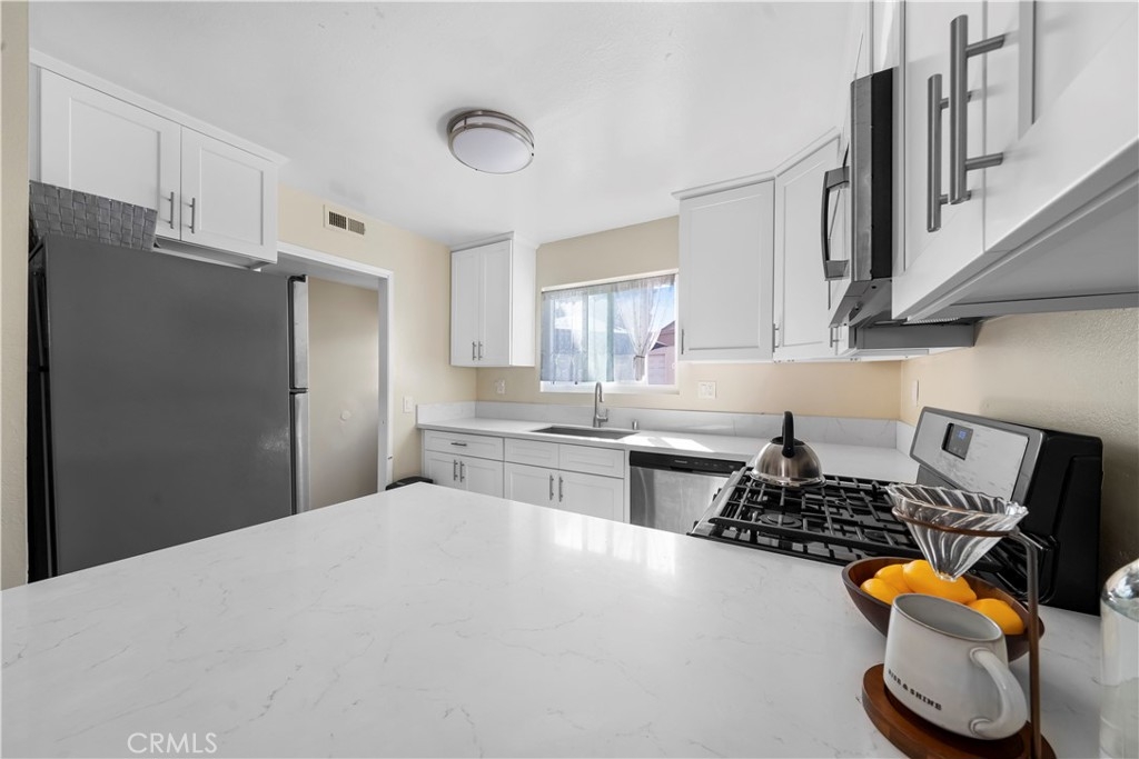 Location, Location, Location! This beautifully maintained 2-story condo offers prime access to local amenities and easy transportation options. With 2 bedrooms and 1.5 bathrooms, the home boasts an open and airy layout that includes a remodeled kitchen complete with shaker cabinets, stainless steel appliances, and quartz countertops. The downstairs area features durable waterproof vinyl plank flooring for easy upkeep, while two private patios enhance the relaxing atmosphere. Additional conveniences include an indoor laundry room, The garage, connected to the backyard, offers side-by-side parking for two vehicles, and there are numerous visitor parking spaces conveniently located right next to the garage, two spacious bedrooms with large closets and a bathroom with a double-sink vanity provide ample comfort. Extra features include central air conditioning, forced-air heating, and a newer water heater. Located in the desirable Sunny Hills High School district, and Gordon H Beatty Middle School is within walking distance. the home is minutes away from shopping, banks, restaurants, parks, and major freeways. The community itself offers a well-maintained pool and playground, perfect for recreation and relaxation. Historical Appeal: Built in 1977 on Fletcher Grn, this home benefits from more modern garage and attic upgrades compared to nearby streets within the complex—Inverness Grn, Argyle Dr, and Firth Grn—constructed in 1964.