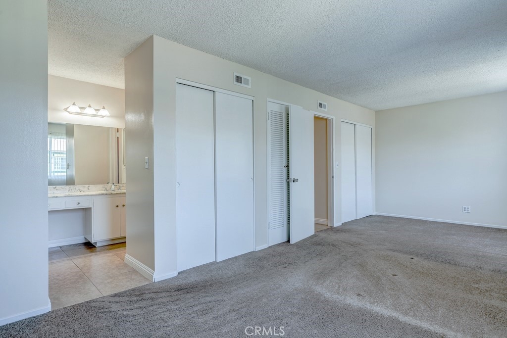 No one above or below in this quiet end unit home in the desirable community of Highland Greens. Home offers an enormous master bedroom and attached bath with walk-in shower, and two other bedrooms and a bath with shower over the tub, all upstairs. Need a 4th bedroom? Master bedroom can easily be split into two bedrooms like other Highland Greens units of this size and layout. Extra-large Living Room with direct access to large private front patio ready for outdoor dining and entertaining. Separate Dining Room with ceiling fan and direct access to large back patio/balcony with view of the neighborhood. Kitchen with tile counters, window over the sink, pantry, and easy access to inside laundry. Interior recently painted and deep-cleaned. Two-car garage below the unit; other parking available. The association pools, playground, and community center are all nearby; Beatty Middle School and 8-acre Smith-Murphy Park are right around the corner. Conveniently located near a wide variety of shopping, restaurants, and services. And it’s just minutes from the 5 and 91 freeways - a perfect location for LA and Orange county commuters!