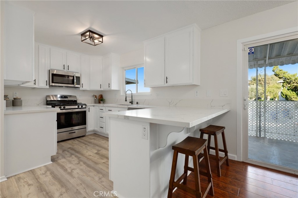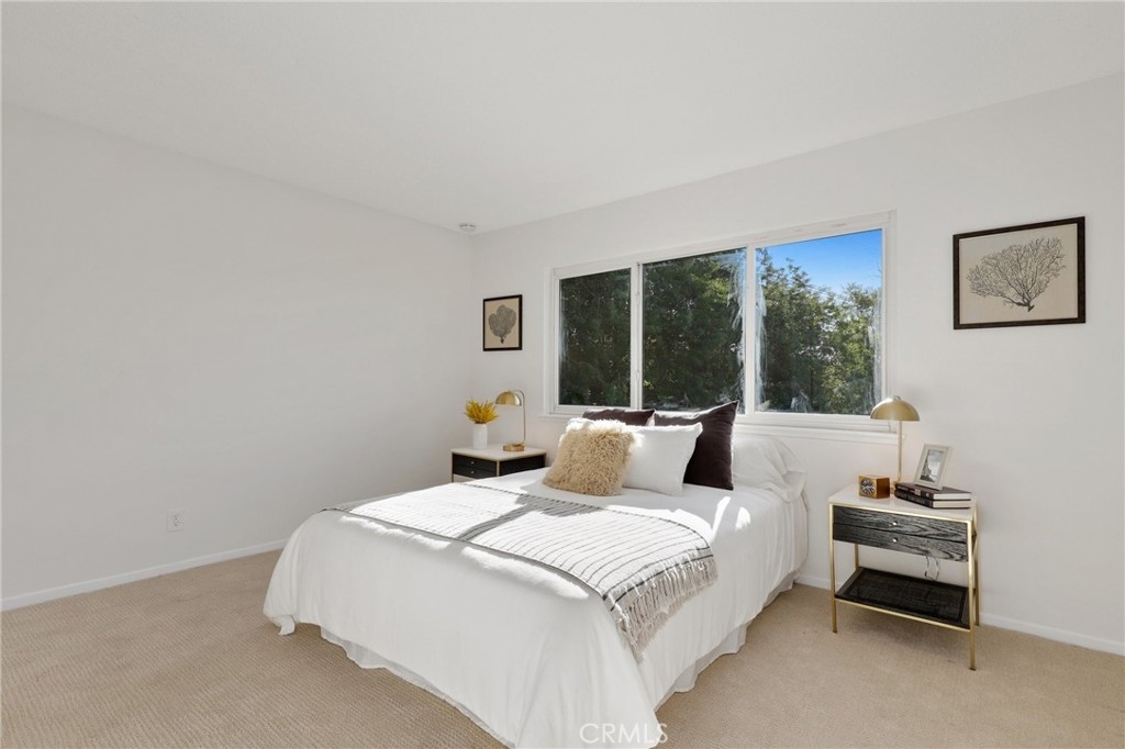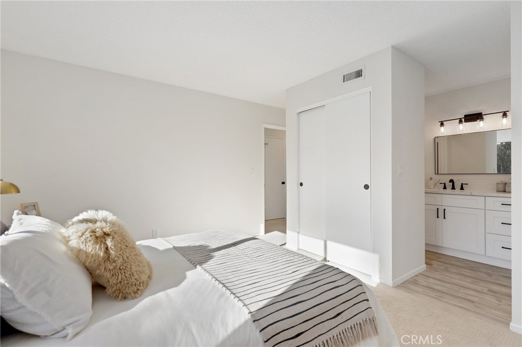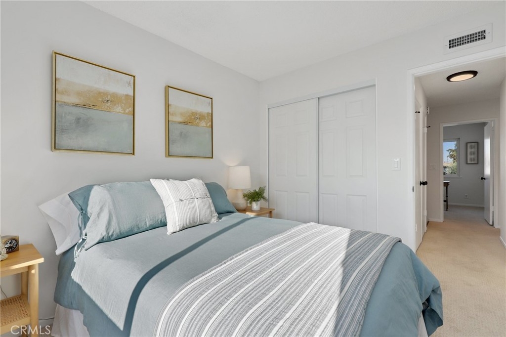 This beautiful North Orange County home features new interior paint of white bright modern tones, recessed lighting, upgraded laminate vinyl plank flooring. The windows allow an abundance of natural light to illuminate the open floor plan. The living room flows seamlessly into the dining area with a large sliding door that opens to the back balcony. The kitchen impresses with white cabinetry, Quartz countertops and stainless-steel appliance includes a gas single over range, microwave and dishwasher. The half bath and inside laundry area completes the downstairs. Up the staircase is the spacious primary bedroom ensuite with a private bathroom, Granite vanity countertop and shower. The secondary bedrooms with new carpet and windows with plenty of natural lighting. A 2-car detached garage, central/heat unit, new door locks on the front and patio door. Nearby shopping, restaurants, access to the 91 and 5 freeways. Must see this move in ready home just waiting for you!