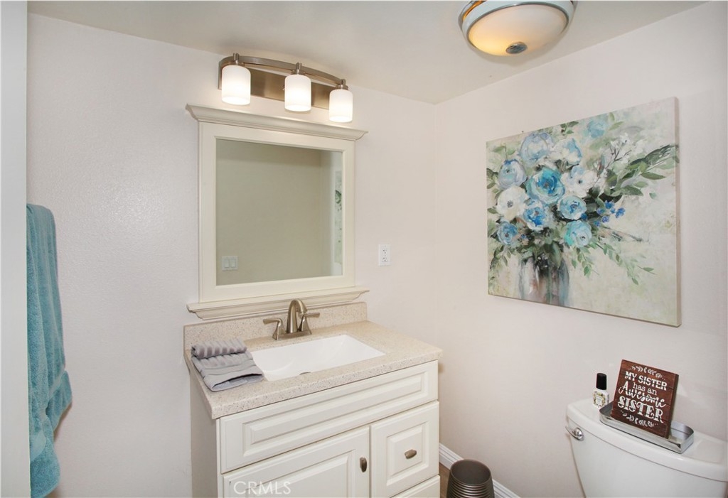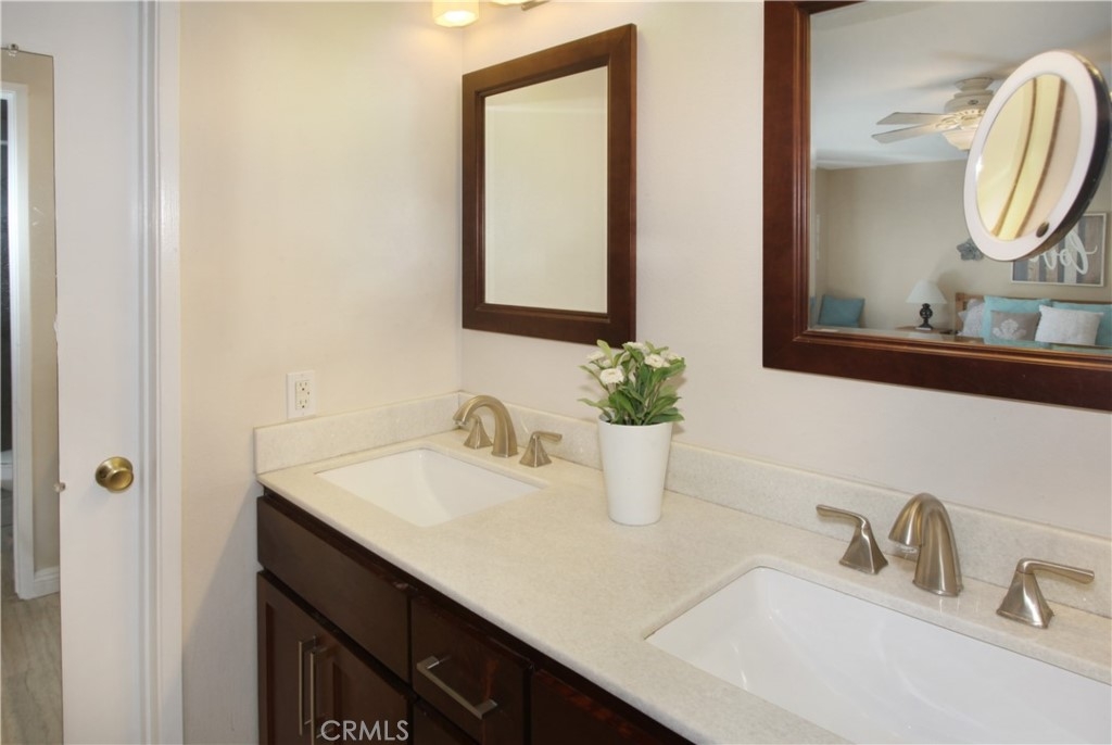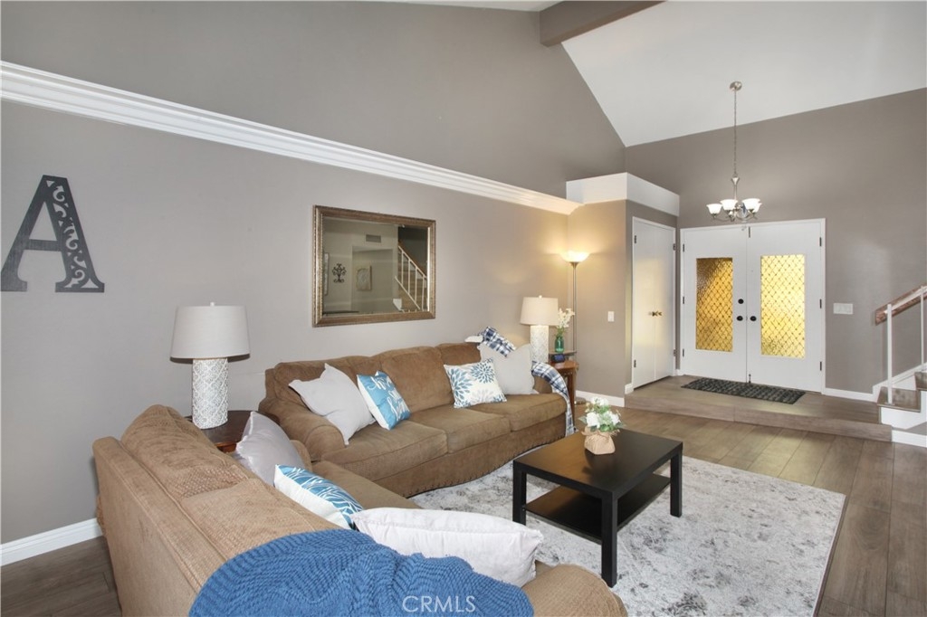 Great opportunity to live in the desirable Meadowbrook Community. This Large upgraded 4 bed 2.5 bath, 1800 sqft home sits on a cul-de-sac, has a 2 car attached garage with direct access to the home. Upon entering through the double door entry you will appreciate the open floor plan soaring ceilings and cozy fireplace, lovely remodeled kitchen, custom cabinets, granite countertops, wood grain tile flooring and a down stairs bathroom. Upstairs you will find the Master suite with private bath and large walk in closet. The additional 3 bedrooms are all ample in size and there is a full bath between them. Some other features include central air and heating, electric water heater, newer tile roof, back yard with patio slab. HOA pool, clubhouse, picnic area, playground. Close to Los Coyotes Country Club, great schools, dining shopping and more.