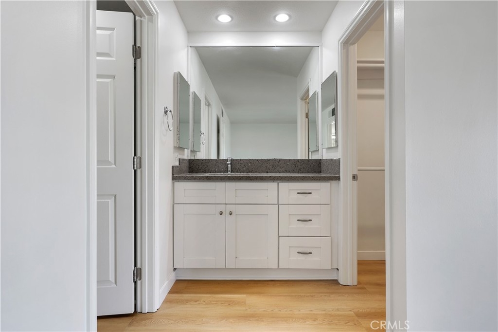 Light and bright two story end unit in Meadowbrook location for sale! Since your at the street end you have a nice greenbelt next door, which is walking distance to the community pool. New A/C & heating system, new flooring thoughout, fresh paint inside, all electrical updated, replaced kitchen faucet, new bathroom sink and cabinet downstairs, condo is move in ready for new owners! Downstairs has formal living with a fireplace and dining room with direct access to a lovely backyard. Formal living room and dining room could be converted into your own media room. Kitchen has granite counter tops with island and eating nook area. There's plenty of cabinet storage and direct access to your two car garage. Washer and dryer located in garage with more storage cabinets. All bedrooms are upstairs. Primary bedroom with walking closet, private shower and a spacious balcony. All bedrooms receive plenty of light, fifth bedroom could be used as an office or study area. Low HOA fees. Conveniently located minutes away from Los Coyotes Country Club & GC, close to many shops/restaurants with 5 & 91 frwys nearby. Not to mention award winning schools.