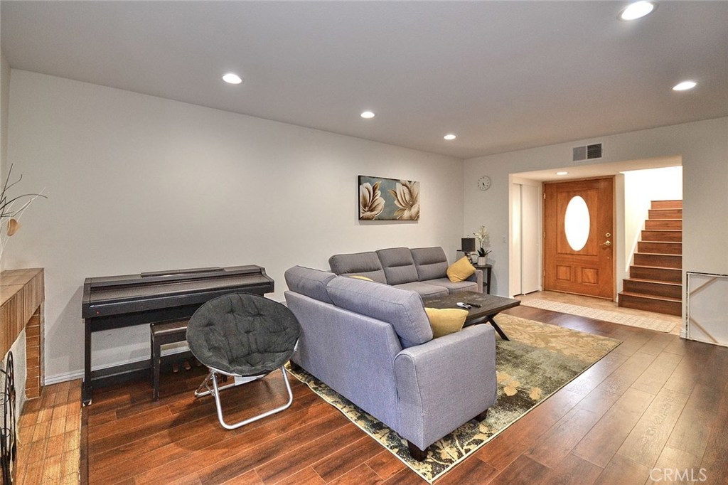 Price dropped way down..... Located in a prime area of the "Meadowbrook" community in north Buena Park. Convenient location A fantastic curb appeal makes this home a must see! This executive Town home (almost 2,000 square feet) offers a great opportunity to live in a exclusive neighborhood near Los Coyotes Country Club. Light, bright and airy floor plan; lovely two story unit, attached only on one side with four bedrooms (one giant bedroom could easily be converted back to the 5th bedroom) and 2.5 bathrooms. All laminated flooring. No carpet. No allergy. Quality sand-coated metal roof, upgraded oak front door, inviting living room with fireplace, formal dining room, spacious open kitchen with granite counter tops, separate family room with ceiling fan, dual-pane windows and sliding doors. Extra large master suite with walk-in closet and huge tiled balcony for enjoying morning coffee. Two updated bathrooms, newer furnace/central air conditioning. Direct access to the two car garage, generous brick backyard for entertaining, gardening, relaxing or pets. Walking distance to Beatty Elementary School, Smith Murphy Park located near Korea town of Orange county, plenty of markets, restaurants, shopping centers, and the 5 and 91 freeways. Award winning Sunny Hills high School. Very low HOA Dues ($134/Mo.) include fire & earthquake insurances, 2 pools, greenbelt, clubhouse, and playgrounds.