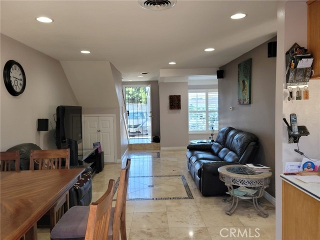 This is your opportunity to secure a beautiful well maintained 4-bedrooms 2 bathrooms townhome in the heart of Buena Park, Near Knott’s Berry Farm, and within minutes of stores, restaurants, and shopping centers, with easy access to the 91 and 5 freeways. Ehlers Community Center, Senior Center, and public schools are just minutes away. It features a bright and spacious living room with a built-in audio system ideal for entertainment. (The 4th bedroom is open to the living room and is currently being used as part of the family room, located on the main floor, it has a closet and its own bathroom, It can be utilized as an office, a Den, a playroom, or make it a private room). The living room also offers direct access to the back patio and to the enclosed two-car garage. The kitchen includes a dishwasher and stove. The Main Bedroom features a walk-in closet and custom cabinets. This unit has a water filtering system, water softener, custom tiles for the living room and patio, Washer and Dryer, and central air conditioner. The amenities include a community pool, Tennis Court, and Children’s play area.