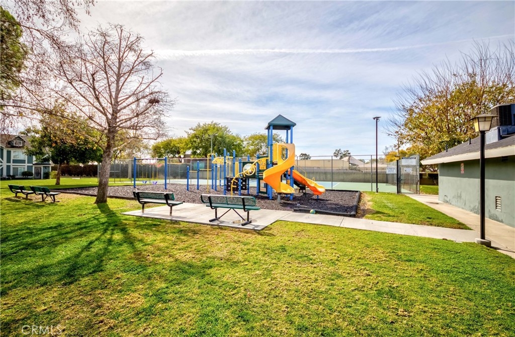 Beautifully upgraded 4 bedroom, 2 baths, 1202sf home in at the Monticello Meadows Community. Features a great floorplan with one downstairs bedroom and bathroom, crown molding, laminated wood floor, recessed lighting, inside laundry, central air and heat. Bright living room with recessed lights opens to dining area. Dining area with new ceiling lights and big patio slider provides lots of natural light. Kitchen with granite counter top and back splash, breakfast counter, recessed lights. New kitchen hot and cold water valves, and new drain connections. Laundry in kitchen area, with new valves. Laminated wood floor in living room, dining area, downstairs bedroom, stairs, and upstairs hallway. Crown molding downstairs and in upstairs bedrooms, and new baseboard. Master bedroom with a large window for natural light and large walk-in closet. Carpet in all upstairs bedrooms. Hallway bathroom with granite counter top, new shower faucet, new shower jet cover, new toilet flapper, gasket, valve and flex. Downstairs bathroom with new control valve and flex, new toilet valve and flapper. Large patio with new patio cover great for BBQ and entertaining. New garage door. Great location with easy freeway access, close to shopping dining, Knotts Berry Farm, Soak City. Low $180 HOA dues includes association pool, tennis court and playground. Great home! Don't miss out on this one! This address is Santa Inez Way and NOT Circle or Place. Close to Tennis Court from this unit.