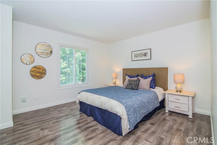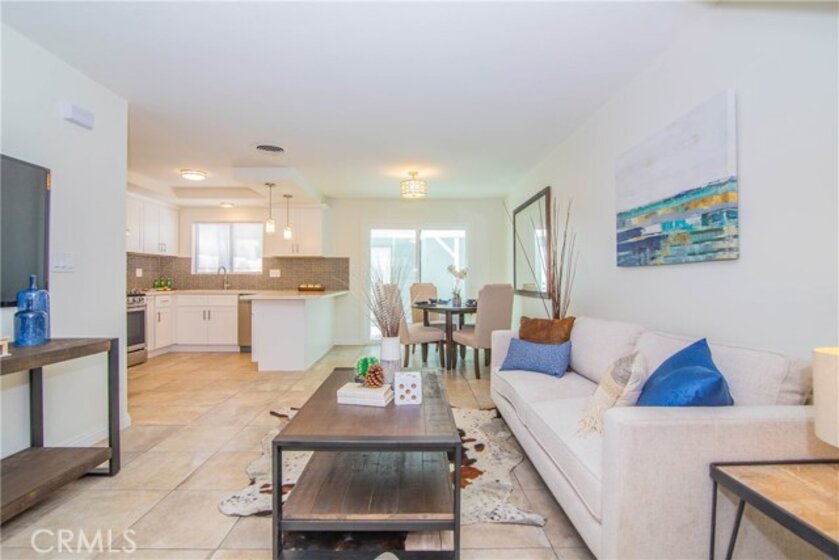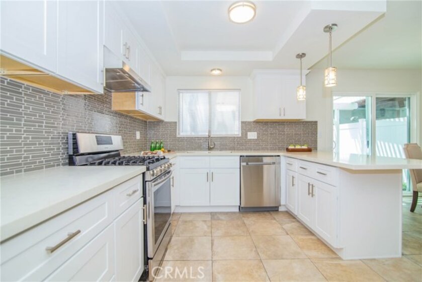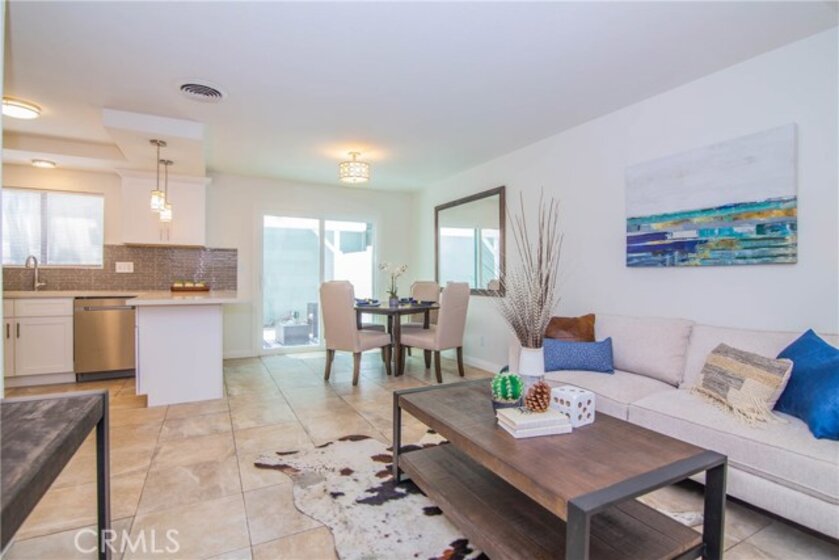 Welcome to this beautifully remodeled, ready to move in turnkey townhome in the sought after Buena Park Monticello community. 4 bedroom, 2 bathroom with 1 bedroom on the main floor that can also be used as a home office. Totally upgraded kitchen with breakfast nook, new cabinets, quartz counter tops, tile splashback, and brand new stainless steel appliances. Fresh new paint throughout the entire house. Remodeled tile shower in downstairs bathroom. Tiled floor downstairs and laminate floor on the stairs and second floor. Cozy backyard is great for relaxing and BBQ with friends and family. Easy garage access through the backyard. Perfect for a first home buyer. Low association dues include a pool, playground, clubhouse, and tennis court. Lots of trees and greenery in the neighborhood. Convenient location, walking distance from the public library and Knotts Berry Farm. Easy access to 91 and 5 freeways, famous restaurants, Buena Park mall, entertainment, and much more!