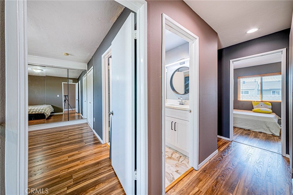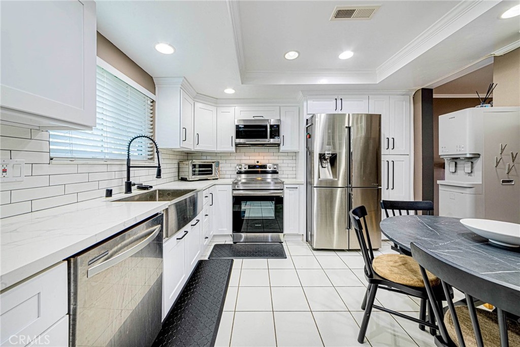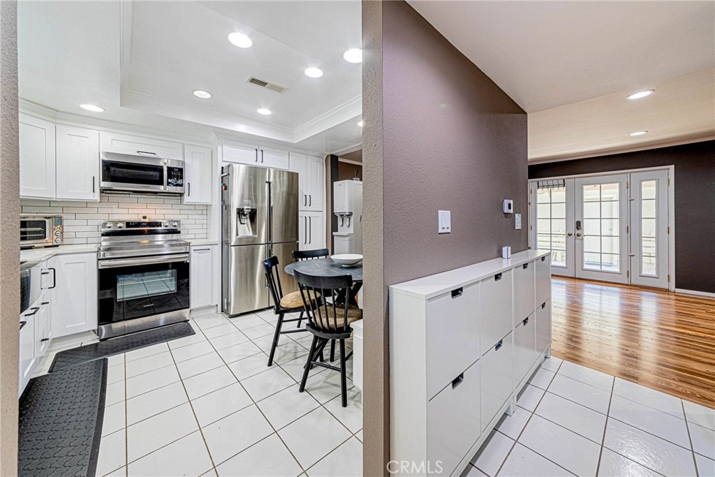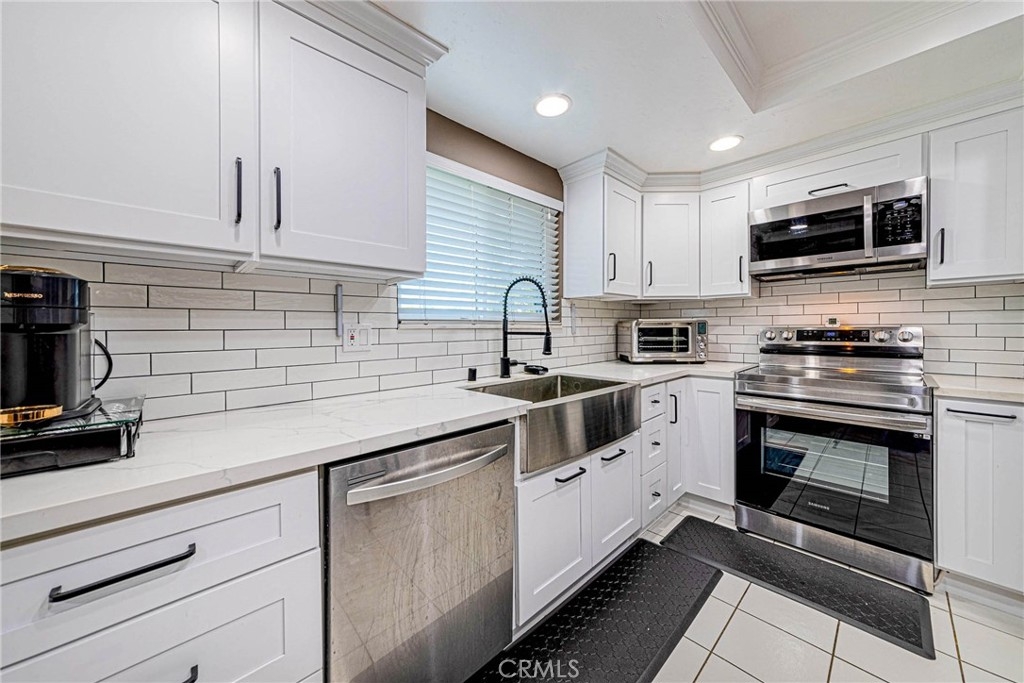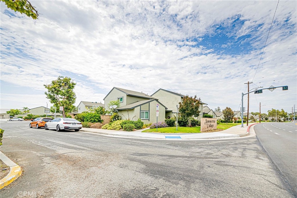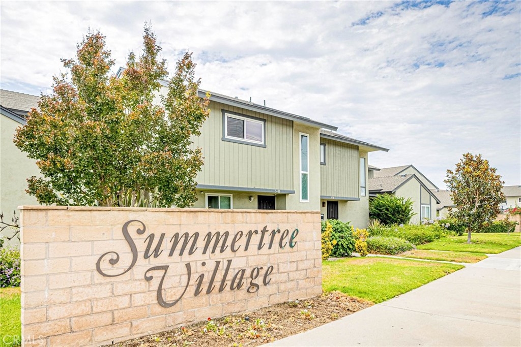 Opportunity awaits and welcome to this gorgeous and lovely 3 bedroom and 1 ½ bath townhome in the prestigious and desirable Summertree Village community. Located in a great neighborhood with excellent schools, convenient to shopping centers on Amerige Heights and Beach & Malvern. Near Los Coyotes Country Club and 100+ Acre park, Ralph B. Regional Park. Walk in and experience an open floor plan with tons of natural light. You will love the new interior paint and new luxury laminate floor which gives the home a modern and luxurious feel. The living room is generous in size and features double-paned French doors. The kitchen has been upgraded with white cabinetry, stainless steel appliances, white quartz counters with seamless backsplash. Upstairs you will find three bedrooms with ample closet spaces. The master features two closets with a walk-in and mirrored wall closet. The 2-car garage features ample shelving storage along with a dedicated 240V outlet for electric vehicle charger. Close proximity to a gated and well-maintained common area with a pool.