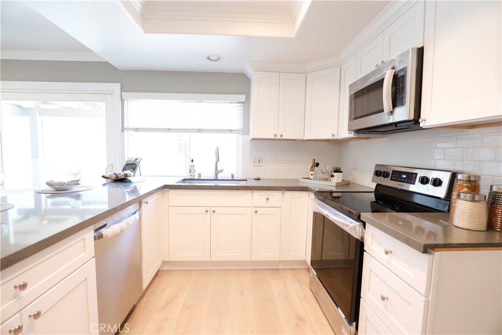 Newly renovated 3 bedroom, 2.5 bath townhome in the sought after Summertree Village community of Buena Park. This spacious two-story townhome has just been upgraded with new paint, remodeled kitchen with new quartz counter tops, cabinets, and stainless steel sink and appliances, new laminated flooring throughout, and updated bathrooms with new quartz counter tops and fixtures. Home also features a large patio and two-car detached garage located through the patio in the rear of the home. Centrally located close to many dining, shopping and entertainment options with convenient access to freeways.