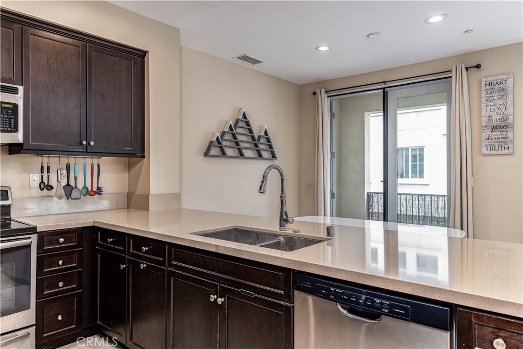 Welcome home to Buena Park to this beautiful 2-bed, 3-bath condo! The first level is conveniently attached to the garage for easy entrance and exit. As you walk up the stairs, a guest bathroom is nestled conveniently before the kitchen. At the end of the stairs, you’ll walk into the open kitchen, just a few steps away presenting ample cabinet storage space, a breakfast bar, an electric range/oven, stainless steel dishwasher, and microwave. Enjoy your meals by adding bar stools to the breakfast bar, or add a table in the adjoining breakfast nook. The living room features a patio and windows all around, allowing for the space to flood with natural lighting. The staircase takes you to the third story where you’ll find a closet with IN-UNIT hookup for washer/dryer, and the two bedrooms. The master bedroom features a double sink with lots of counter space and storage and a privacy door separating the toilet. The second bedroom features a sliding double mirror closet. This unit also has an attached garage that can fit 2 cars with plenty of room on the sides for storage. Prime location near the 91 FWY. Conveniently near shopping and entertainment such as Target, Stater Bros., The Source and more! This is an AFFORDABLE HOUSING property that has restrictions.