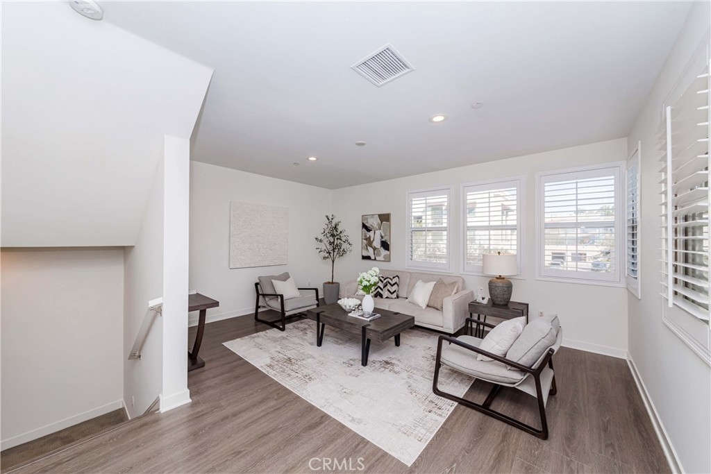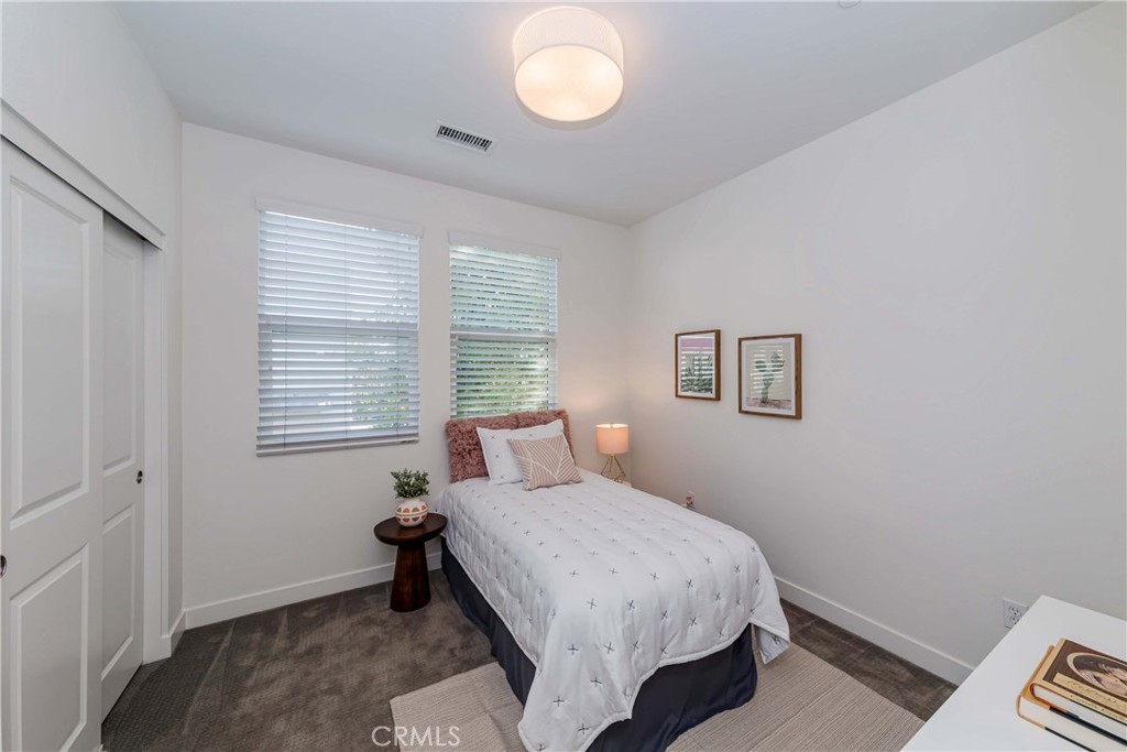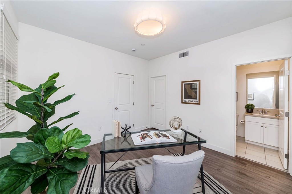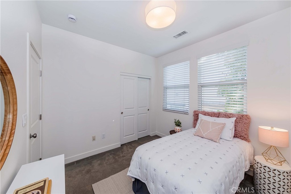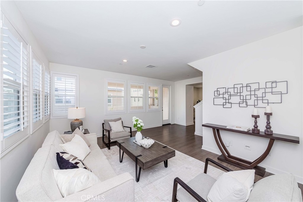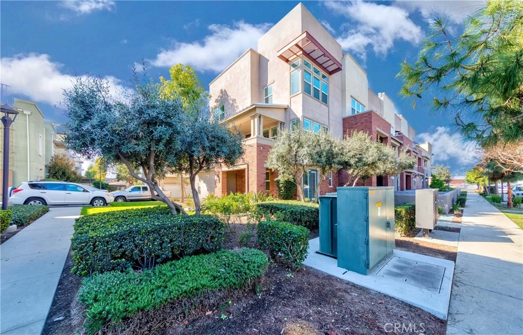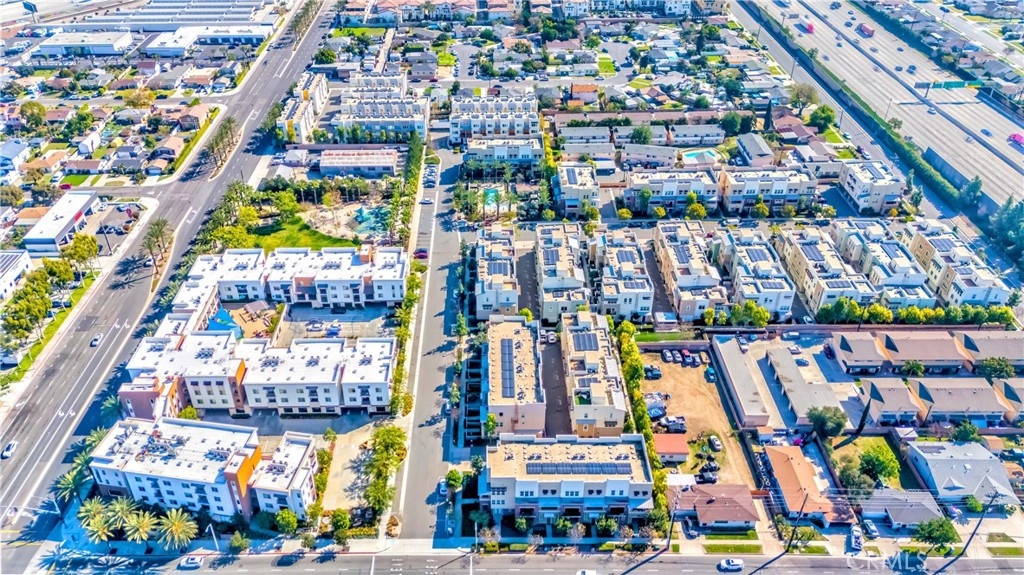 IT COULD BE FEATURED IN THE COVER OF 'HOME & GARDEN MAGAZINE'! Spectacular is the only word to describe this property. It's a "10", best of the best. An ultra-modern urban development built by a leading home builder, City Ventures Company; this project is composed of a dynamic layout. AWESOME END UNIT THAT IS ALSO THE LARGEST MODEL; four bedrooms & 3.5 bathrooms; this modern style property shows like a model and offers a lifestyle you can enjoy -- not dream about. Located on a perfect interior location with a delightful floor plan. Each floor has exceptional living spaces that blend style, sustainability, and innovative technology into the home of the future. This unit has paid off SOLAR PANELS installed by the builder but they are not in operating condition and are not connected to the grid. Front porch creates a charming atmosphere. Neutral color tile in entrance, MAIN FLOOR BEDROOM (now used as an office) AND BATHROOM with brand new waterproof laminate flooring, spacious walk-in closet and French doors leading to green area. Open chef's kitchen includes Quartz countertops, white shaker cabinetry, stainless steel/black appliances, large center island and dining area. Comfortable formal living room with French doors leading to the cozy balcony for morning coffee or relaxing. Additional half-bath in second level is perfect for guests. With an abundance of windows for natural light, this home is bright and inviting. Elegant primary suite with dual sinks, Quartz countertops, walk-in shower enclosure and walk-in closet. Handy laundry room with linen storage. Recessed lighting, freshly painted interior, plantation shutters throughout. Direct access to 2-car garage with 220V electric vehicles charging station. The resort-style amenities include swimming pool with covered cabanas, BBQ area for perfect outdoor entertaining with family and friends, a dog park and kids playground/park. Just minutes away from 91 & 5 freeways, major amusement parks, Knott's Berry Farm, and Disneyland. It is within a block from The Source Mall Orange County which is Buena Park's newest hot place for entertaining, dining and shopping.