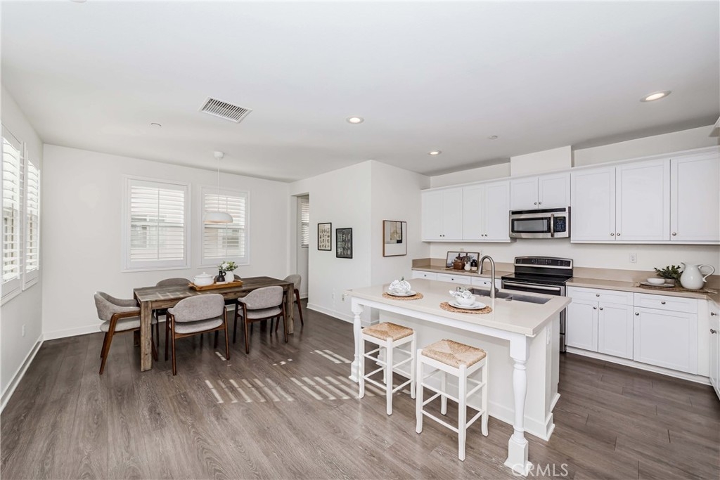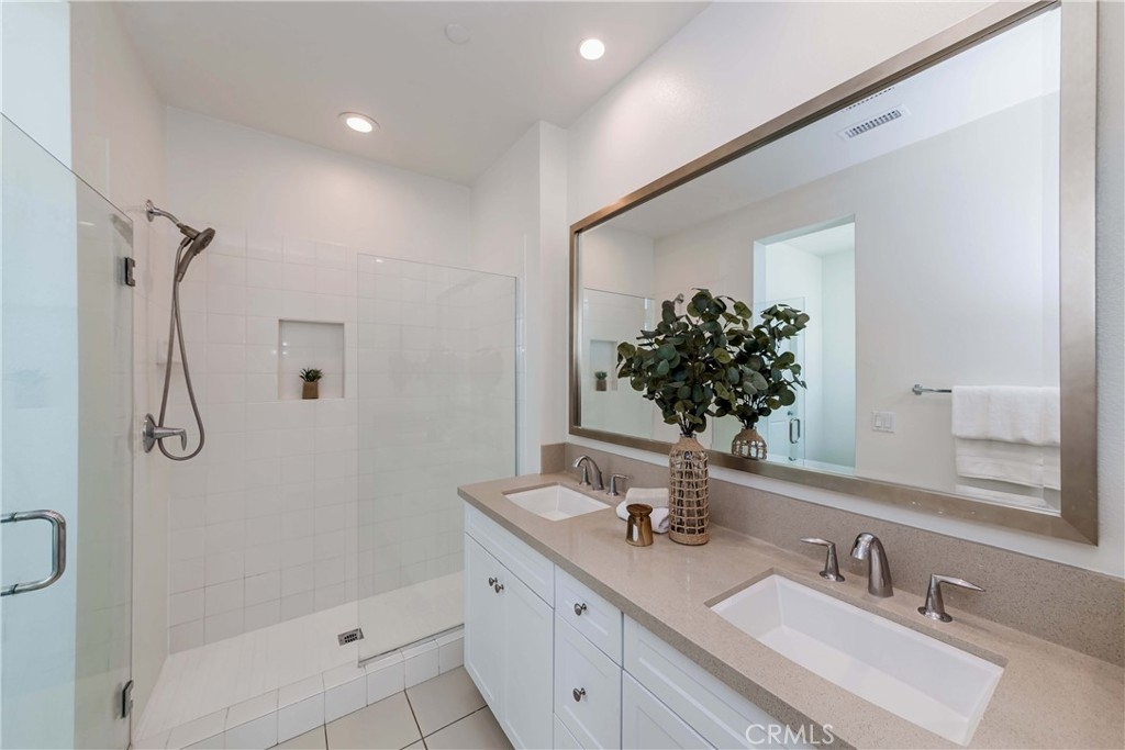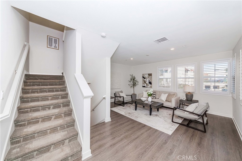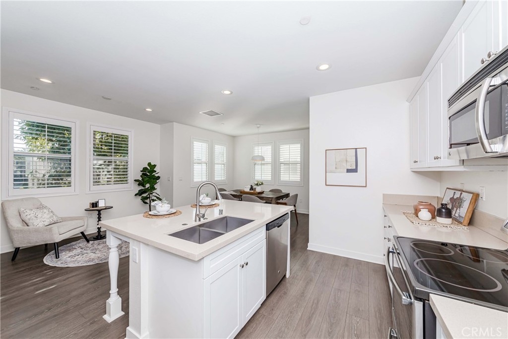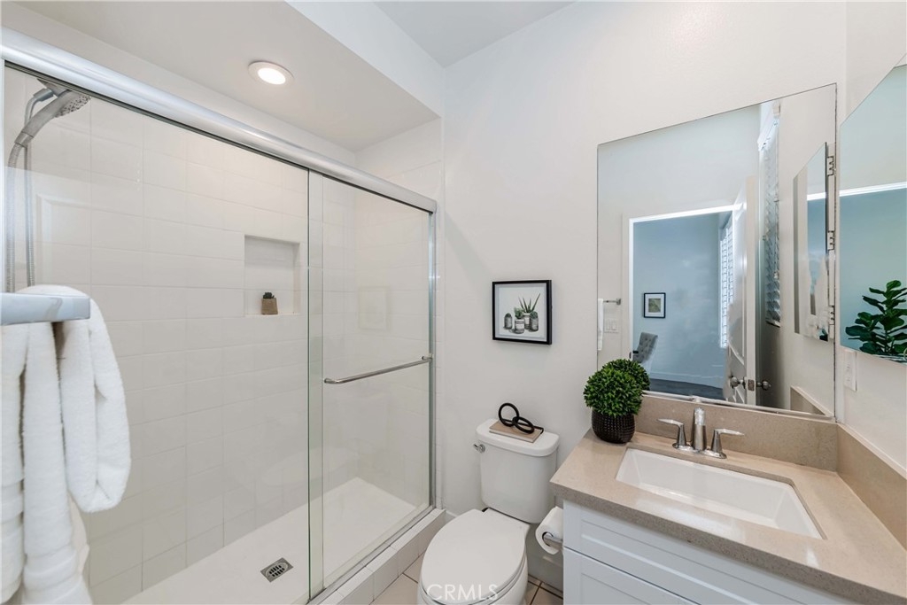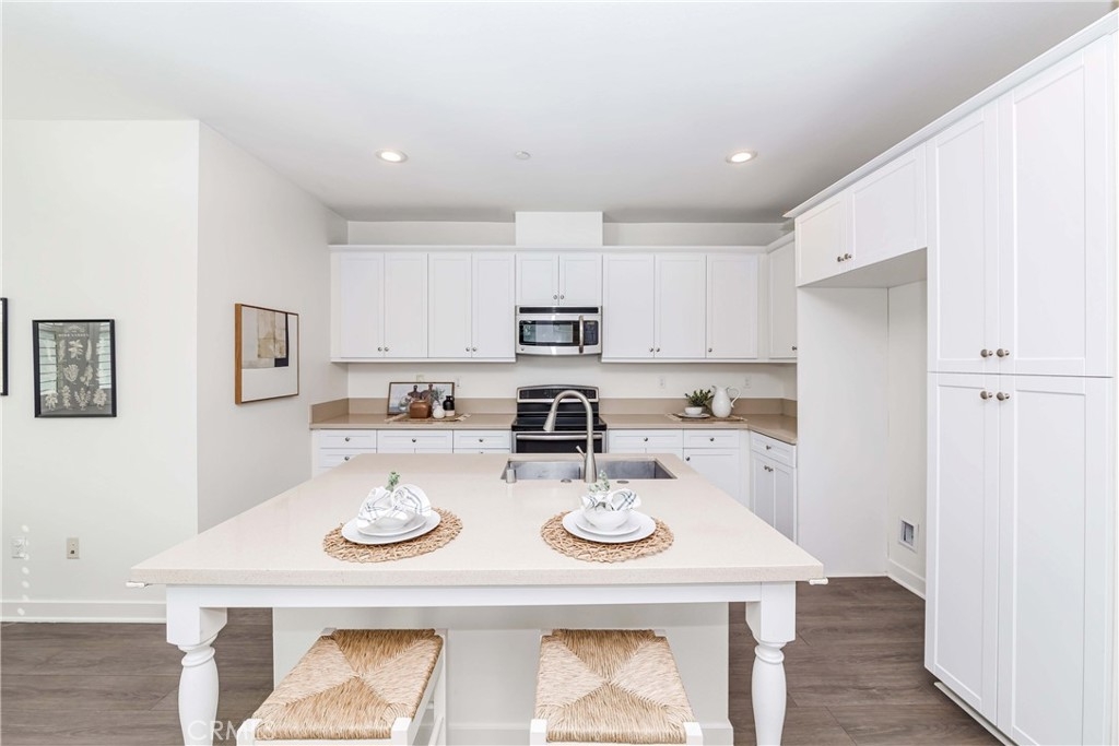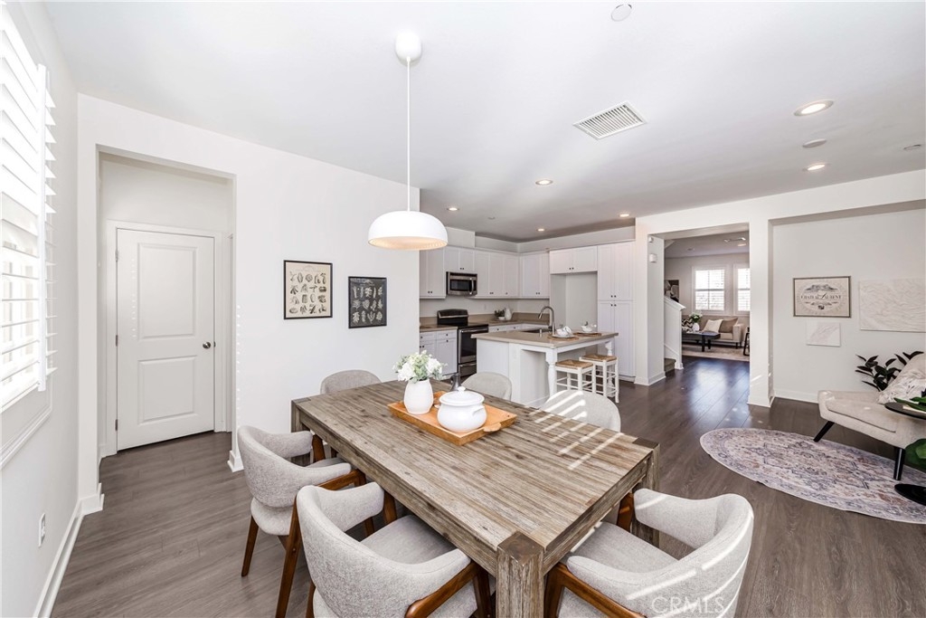 IT COULD BE FEATURED IN THE COVER OF 'HOME & GARDEN MAGAZINE'! Spectacular is the only word to describe this property. It's a "10", best of the best. An ultra-modern urban development built by a leading home builder, City Ventures Company; this project is composed of a dynamic layout. AWESOME END UNIT THAT IS ALSO THE LARGEST MODEL; four bedrooms & 3.5 bathrooms; this modern style property shows like a model and offers a lifestyle you can enjoy -- not dream about. Located on a perfect interior location with a delightful floor plan. Each floor has exceptional living spaces that blend style, sustainability, and innovative technology into the home of the future. This unit has paid off SOLAR PANELS installed by the builder but they are not in operating condition and are not connected to the grid. Front porch creates a charming atmosphere. Neutral color tile in entrance, MAIN FLOOR BEDROOM (now used as an office) AND BATHROOM with brand new waterproof laminate flooring, spacious walk-in closet and French doors leading to green area. Open chef's kitchen includes Quartz countertops, white shaker cabinetry, stainless steel/black appliances, large center island and dining area. Comfortable formal living room with French doors leading to the cozy balcony for morning coffee or relaxing. Additional half-bath in second level is perfect for guests. With an abundance of windows for natural light, this home is bright and inviting. Elegant primary suite with dual sinks, Quartz countertops, walk-in shower enclosure and walk-in closet. Handy laundry room with linen storage. Recessed lighting, freshly painted interior, plantation shutters throughout. Direct access to 2-car garage with 220V electric vehicles charging station. The resort-style amenities include swimming pool with covered cabanas, BBQ area for perfect outdoor entertaining with family and friends, a dog park and kids playground/park. Just minutes away from 91 & 5 freeways, major amusement parks, Knott's Berry Farm, and Disneyland. It is within a block from The Source Mall Orange County which is Buena Park's newest hot place for entertaining, dining and shopping.