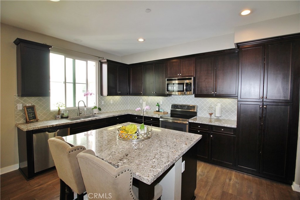 Beautiful townhome in the "Parker Collection". This home is all electric and solar powered! It has been fitted with energy efficient and Earth friendly designs with solar, Nest thermostat and insulation that creates an energy efficiency that exceeds 15% of the state mandated standard. It features 3 bedrooms and 2.5 bathrooms including a private bathroom for the master bedroom. It is an end unit with a rooftop deck and a great VIEW of the city! It features beautiful laminate flooring, a large kitchen with granite countertops and dark wood cabinets. AMAZING AMENITIES including resort style swimming pool with covered cabana, barbecue area, dog park, and kids playground. Most of all, just a minute away from freeway 91 and 5. It is just blocks from the Source, Buena Park's newest hot spot, and minutes from Knotts-Berry Farm and Disneyland. You will Love this home!