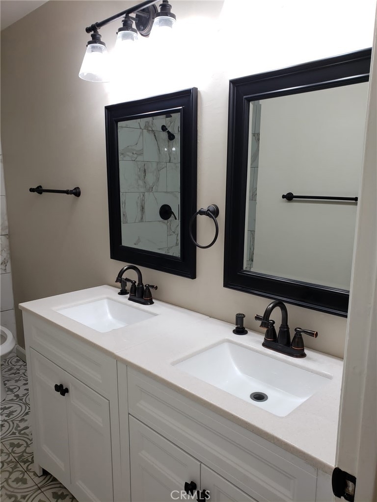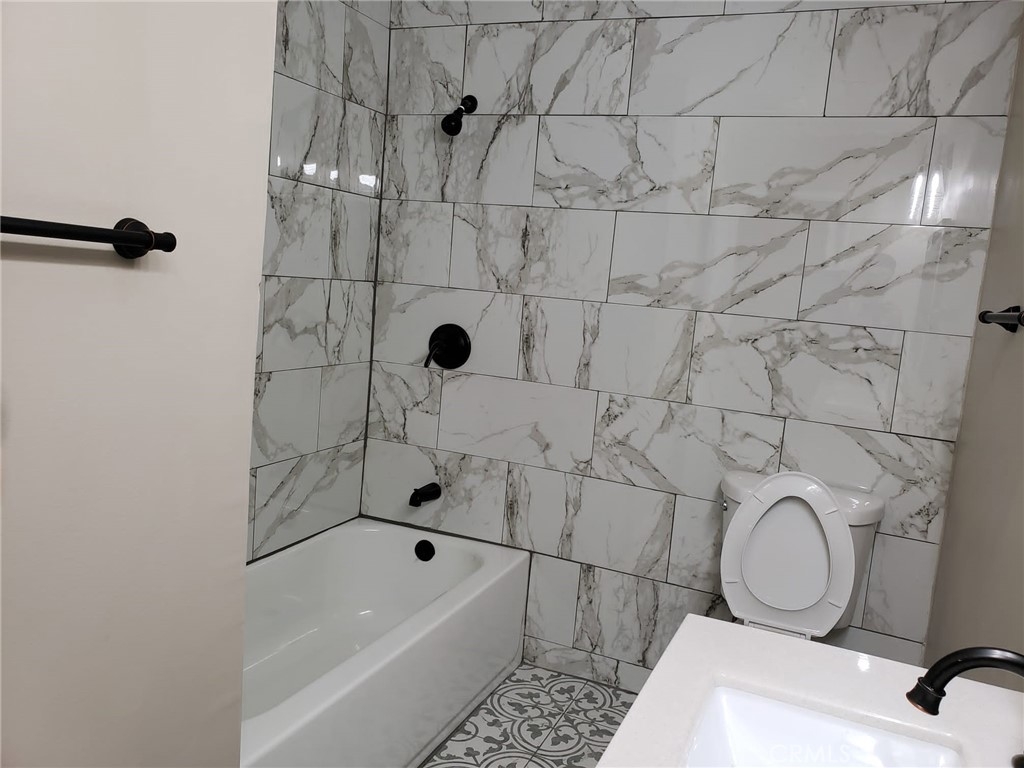 Finally Its ready to show. Totally Upgraded 2 br/1.5 bath 2 story unit located in a quiet community with pool. Upgrades include, newer shaker kitchen cabinets, Gas range, new dishwasher, built-in microwave, recessed lights in living room, designer back splash, quartz kitchen counter, flooring, Scrapped ceiling, recessed lights, double pane windows, interior paint. Both baths fully upgraded. Master bath has dual vanity. Step out from kitchen to your fenced back cement patio has Faux turf. Fan/light fixture in in the breakfast nook & Master bedroom. New front door & interior panel doors. New AC in the Living room. Walk to the Elementary & Junior schools & shops.