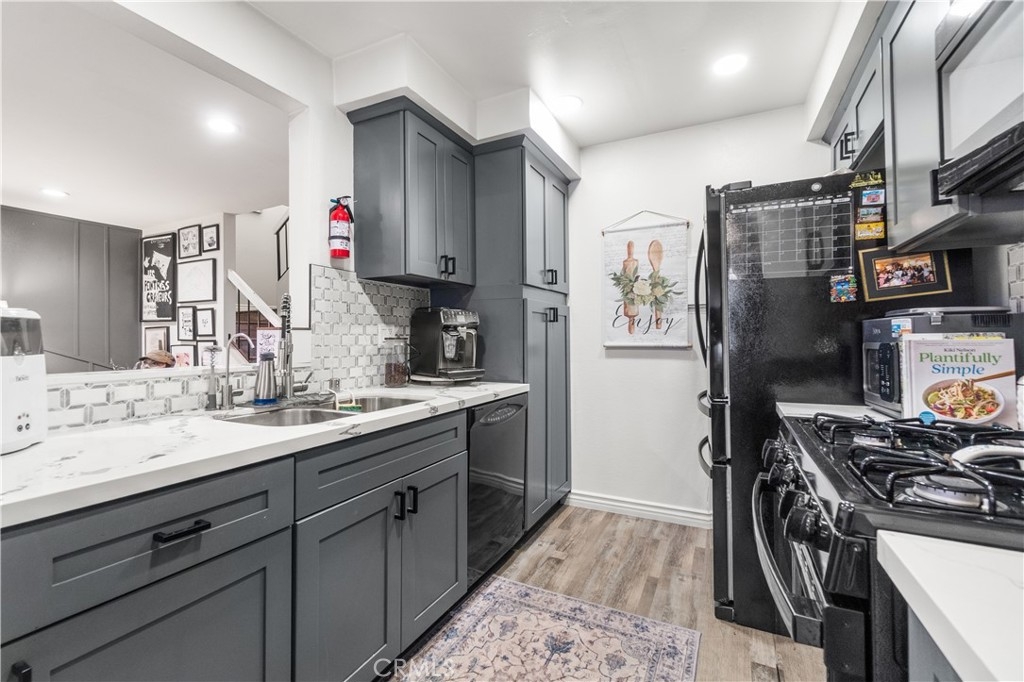 Move-in ready two-story townhome-style condo in a quiet, well-maintained community with no one above you. This bright end unit features a large private patio, two single-car garages (one attached with direct access and one detached), and low HOA dues. Tastefully updated with new windows, new interior AC, a tankless water heater, luxury vinyl flooring throughout, fresh interior paint, new doors, and fully remodeled kitchen and bathrooms, this home blends modern finishes with functional living space. The open-concept main level flows to a private patio — perfect for grilling or relaxing. Upstairs offers two generous bedrooms and updated baths with clean, modern touches. Located in Buena Park’s 90620 area close to shopping, dining and entertainment — just minutes from The Source OC shopping & dining complex, and a short drive to the Buena Park Mall and many popular local eateries like Porto’s Bakery & Cafe, Jin Cook, Gaucho Grill, and more. Fun and family-friendly attractions like Knott’s Berry Farm, Knott’s Soak City water park, Medieval Times and Pirates Dinner Adventure are nearby too. Easy access to the 91 and 5 freeways makes commuting a breeze.