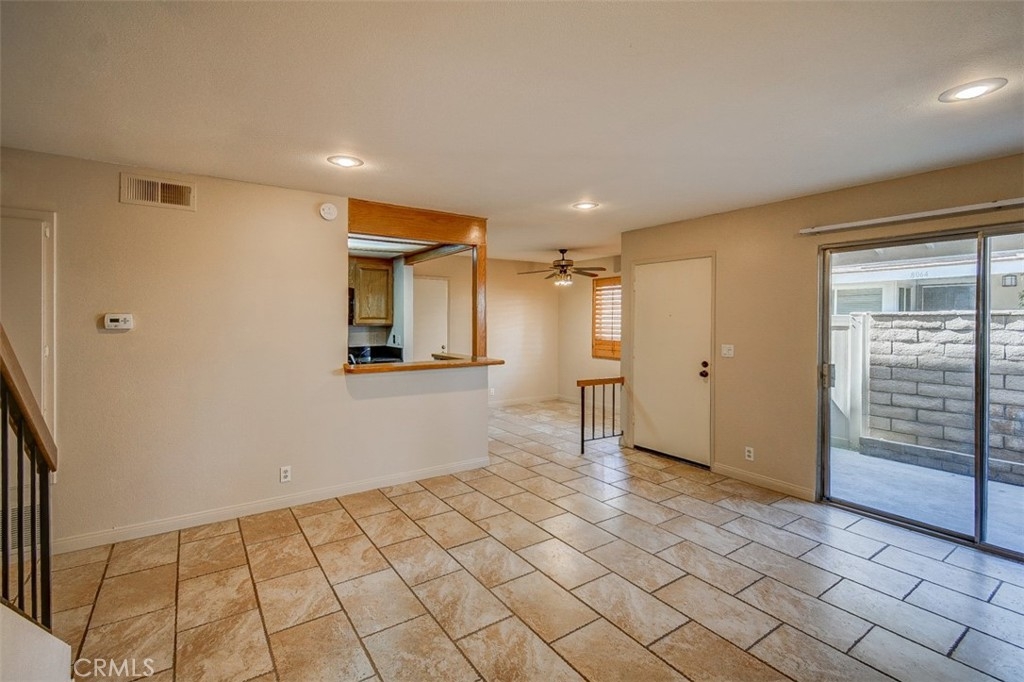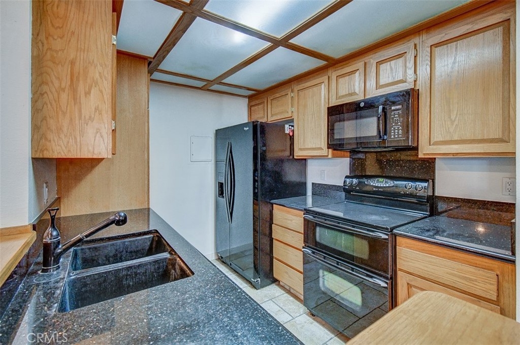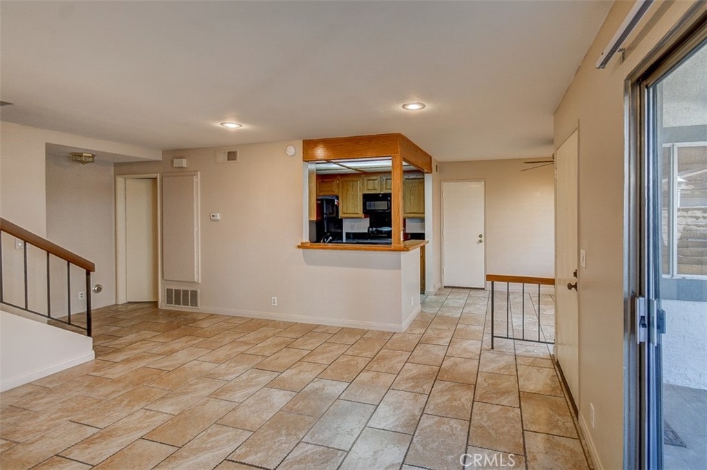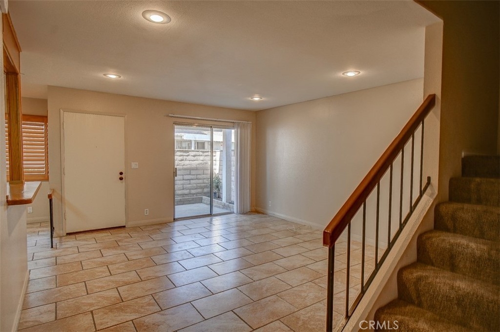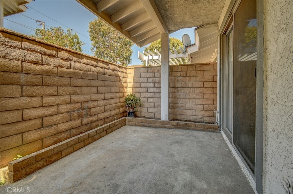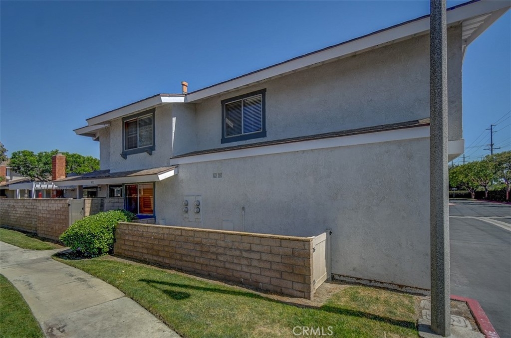 Don't miss this bright & spacious end unit condo with it's own private patio. 2 bedrooms 1.5 baths with 2 separate one car garages with direct access into home from one of them & the other just steps away. Upgraded kitchen with granite counter tops, wood cabinets, stove, microwave, dishwasher & refrigerator all included. Downstairs open floor plan has natural stone flooring, recessed lighting, breakfast bar, separate dining area with wooden shutters, spacious living room with sliding glass doors leads to private covered patio area with block wall fencing & block planter beds. Upstairs is the master bedroom with walk in closet, full bathroom with dual sinks & vanities. Washer/dryer hook-ups in attached garage. Green belt grounds are well maintained, community sparkling pool & spa. Close to shopping mall, restaurants & parks with easy access to 91 & 5 freeway.