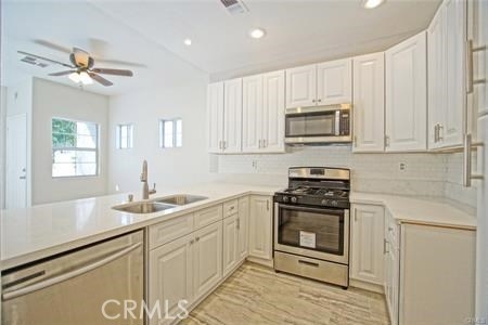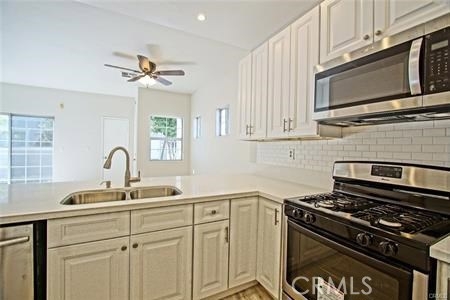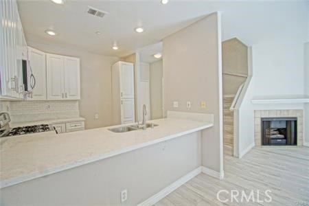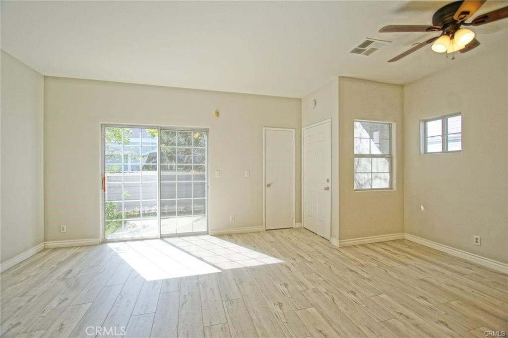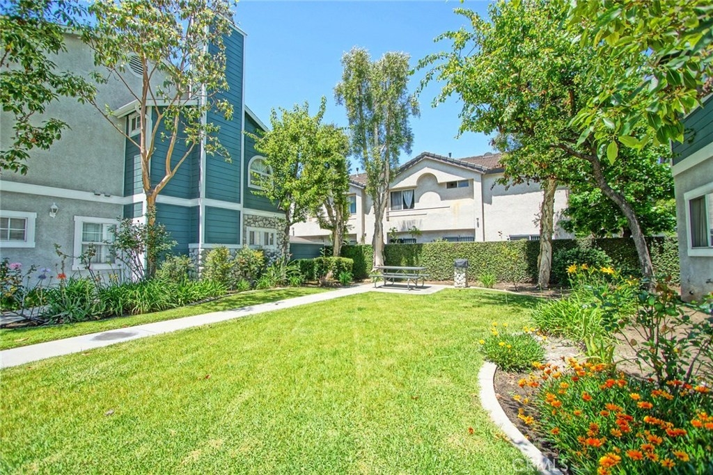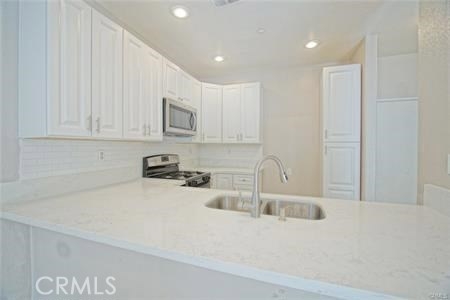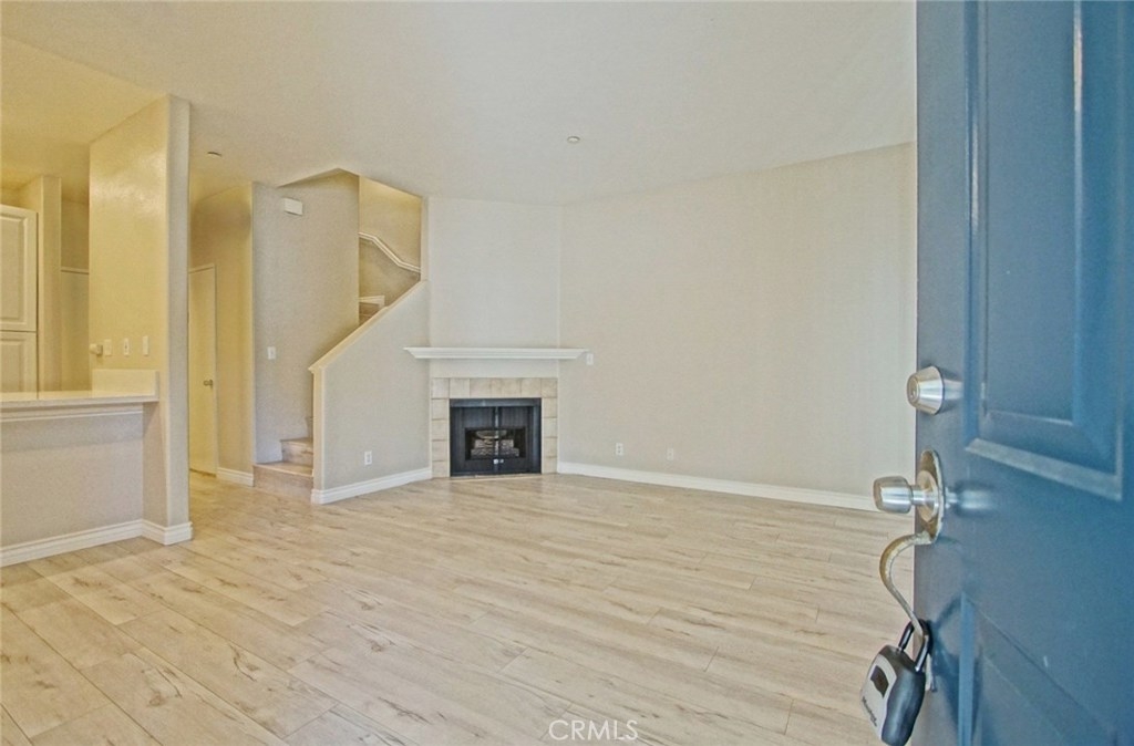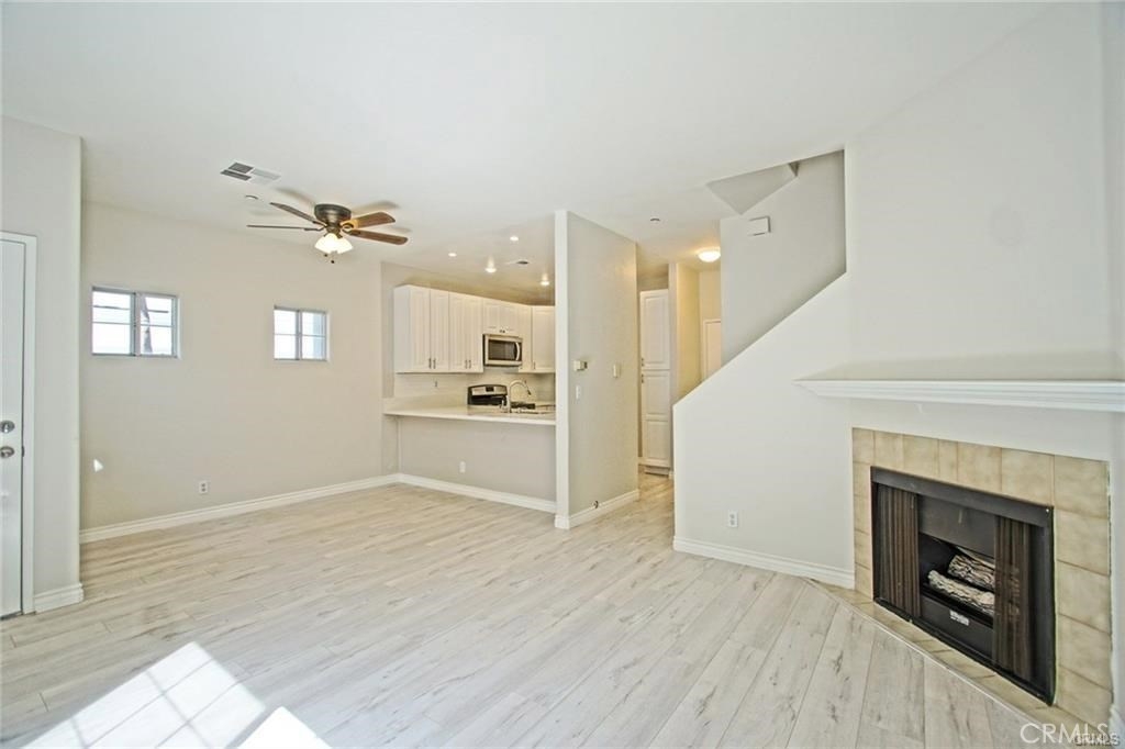 Desirably remodeled two story Town home at secured gated community!! There aren't many homes that has condition and the location for the price like this home! Newly renovated modern interior of Spacious 3 bedrooms with 2.5 bath situated in very private end unit. High quality 12 mm Laminated flooring throughout. Romantic gas fireplace at living room. Open kitchen with quartz counter tops, Top quality Mosaic tile back splash, gorgeous fine quality cabinets with stainless steel appliances, and recessed light. Gorgeous Ceramic tile flooring at kitchen & bathrooms. Master suite with walk in closet, new quartz counter top & new dual sink and faucet, rejuvenated cabinets at both master and second bath. Huge balcony off second bedroom and mirror closet door at 2nd and 3rd bedroom. All high ceiling bedrooms. Inside laundry room/place. 4.25" baseboard throughout. Beautiful French window throughout and French sliding doors at living room off to front patio and bedroom off to balcony. Two car attached garage with roll up remote door. conveniently located near major fwy I-5, nearby shops, restaurant and so much more to enjoy..Must see to appreciate!!