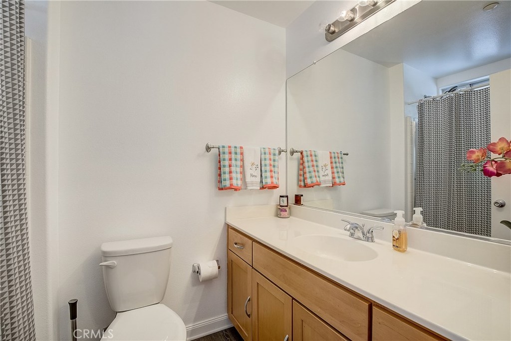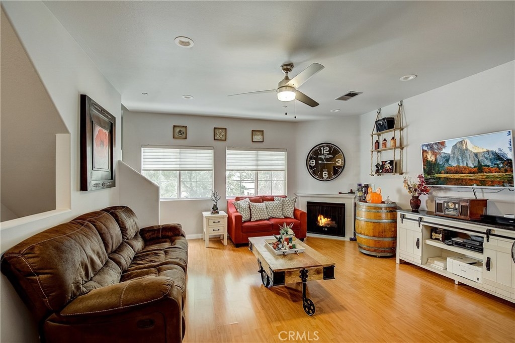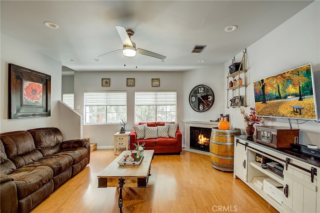 This upgraded centrally located home in a private gated community is ready for its new owners! New exterior paint and wood work is being completed currently. Laminate wood floors, newer paint and recessed lighting compliments the bright and open floor plan. The kitchen features new quartz counter tops, large view window, and breakfast bar with ample seating. The living room flows seamlessly from the kitchen and features light-catching windows and cozy fireplace. A powder bath and convenient laundry room completes the main living area. Upstairs the master suite features vaulted ceilings, plenty of closet space, ceiling fan, and an en-suite bathroom with bath and shower. The secondary bedroom is a generous size and also has an en suite bathroom. In addition this home has a 2 car attached garage with direct access to the 1st floor. Centrally located near freeways, restaurants, shopping and entertainment. Welcome Home!
