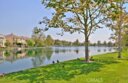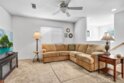 FIRST TIME ON THE MARKET! Fabulous lake living at its finest! Located in a well-maintained development with manicured grounds, surrounded by lush greenbelt and mature trees, within the beautiful and peaceful “Westshore at Lakeside” gated complex. The relaxing community atmosphere and pristine surroundings are carefully cared for by the Association. This meticulously maintained home shows 3 bedrooms on title but actually features 2 bedrooms plus a loft (builder’s option). This warm and inviting two-story detached condo (no shared walls) offers an open-concept layout with no neighbors above or below — truly feeling like a single-family residence. Large windows flood the interior with natural light, creating a bright and airy living space. The upscale living room boasts a tile fireplace; ceiling fans for added comfort. The open, spacious kitchen includes tile countertops, maple cabinetry, a center island, recessed lighting, and a generous dining area. Flooring is a tasteful mix of tile and carpeting, complemented by plantation shutters. The elegant master suite features vaulted ceilings, dual sinks, a full bathroom, and walk-in closet. The second bedroom offers mirrored closet doors, adding to the home’s charm and functionality. Convenient upstairs laundry with a washer and dryer, both included in the sale. Home features a solar subscription service (approx. $130/month) that helps reduce energy costs; this is not a solar lease. Buyer to verify terms. The side yard, accented with brick, provides ideal space for outdoor entertaining. Residents enjoy access to an incredible 8-acre lake with boat rentals, a Jr. Olympic pool, and a shallow children’s pool set in a picturesque environment. Additional community amenities include barbeques, fire pits, gardens, and a Cape Cod-style clubhouse. A basketball half-court, playground, walking paths, and greenbelt complete this lovely gated neighborhood — truly resort-style living! Ideally situated near the Metrolink Station, restaurants, grocery stores, shopping, and golf courses.