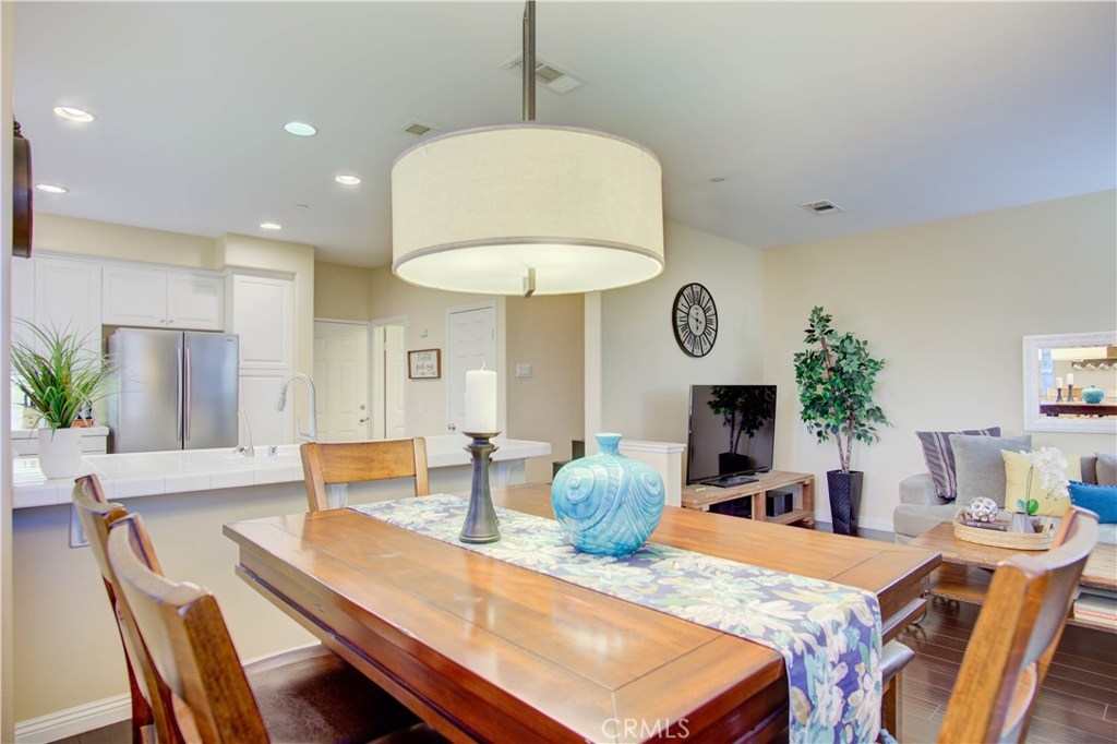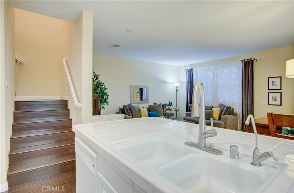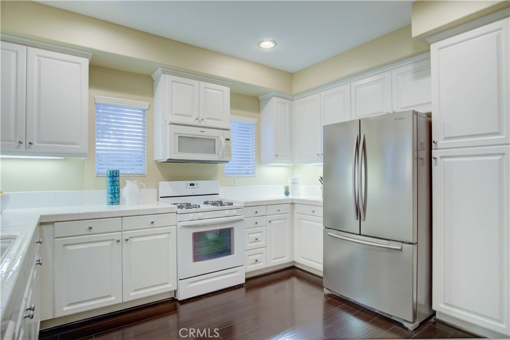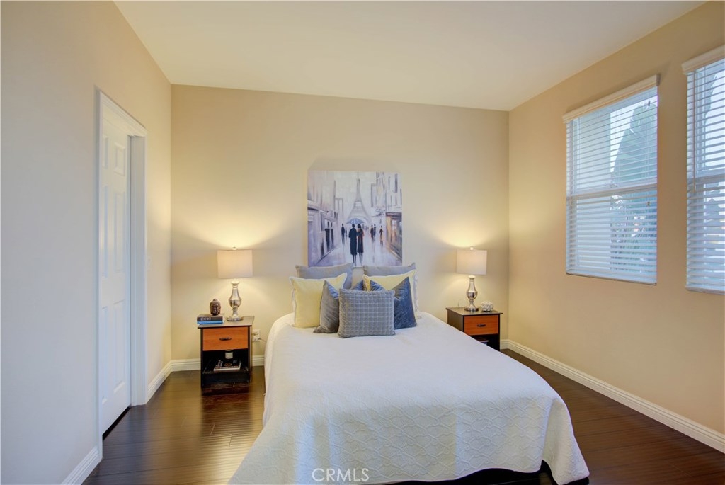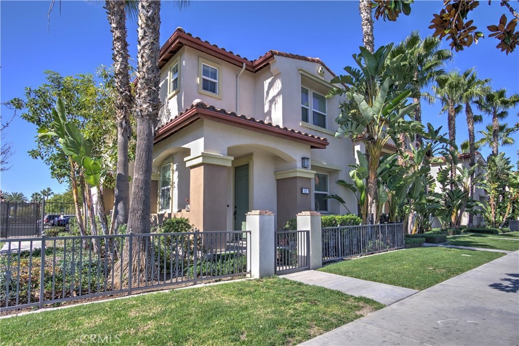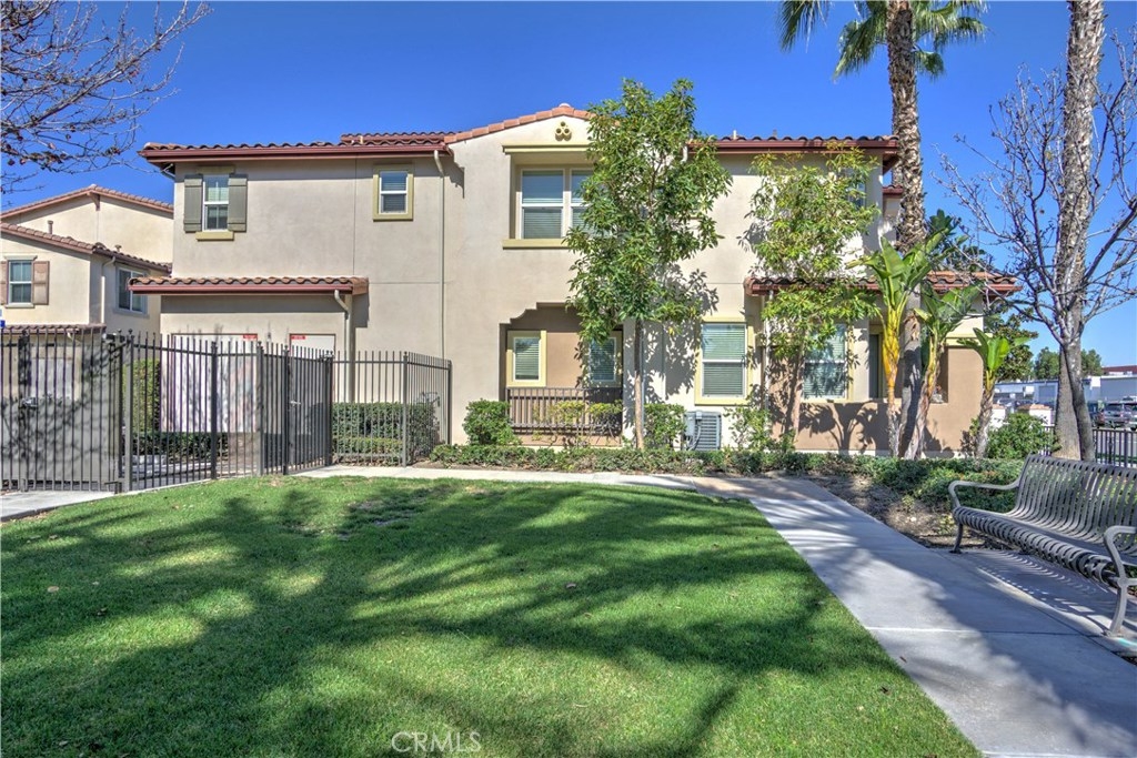 LOCATED NEXT TO A SMALL GREEN AREA WITH VIEW IN ALL SOUTH SIDE WINDOWS! One of the most convenient areas in a newer development in Buena Park. This property faces Dale Avenue. Picture perfect! Popular and desirable "Founder's Walk" newer private gated community. Quiet, relaxing ambiance and beautifully maintained by the Association. This awesome end-unit, attached only on one side, is a RARE 4-bedroom/2.5 bathroom model. This delightful two story home is warm, inviting and has a fantastic floorplan for great entertaining. Front porch creates a charming atmosphere. Host family and friends in both the upscale living and dining rooms. Lots of windows make it light, bright & airy. Open chef's kitchen with tile countertops, upgraded white color cabinets & white color appliances. Gorgeous dark color laminate flooring throughout. Powder room w/ white pedestal sink, large storage area. Sumptuous master suite w/ dual sinks, oval tub, separate shower & spacious walk-in closet. All 4 bedrooms are generous sized. Upgraded light fixtures, recessed lighting, custom painting. Handy upstairs laundry room. Direct access to the two car garage and plenty of guest parking nearby. Easily accessible and within walking distance to Metrolink -- just follow the community's exclusive gate to the Metrolink station. Enjoy Association pool, spa & lounge area. The "Beach Blvd Corridor" is close by with all its restaurants, grocery markets, parks, transportation, freeways and golf courses. IT SHOWS GREAT!