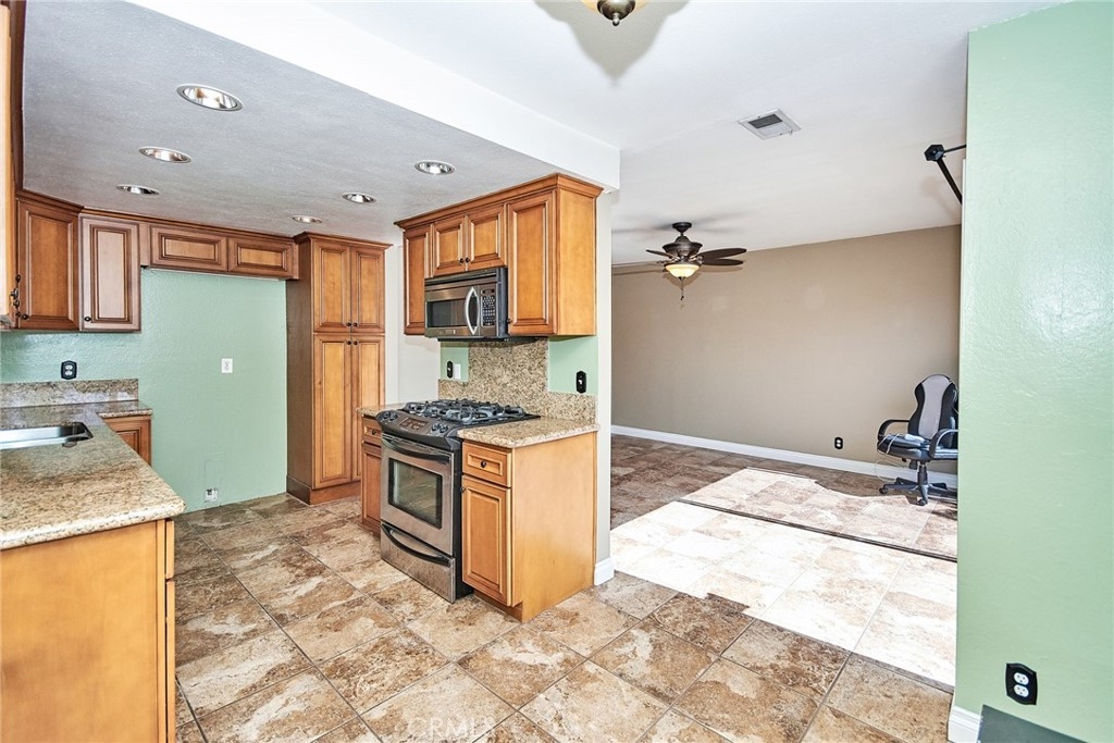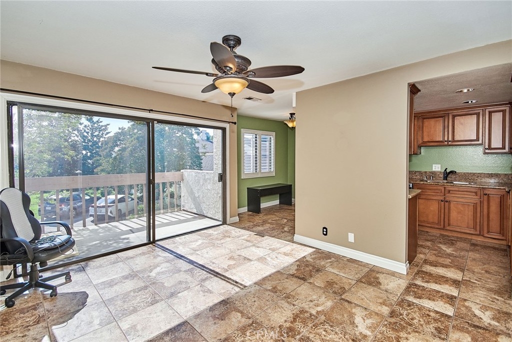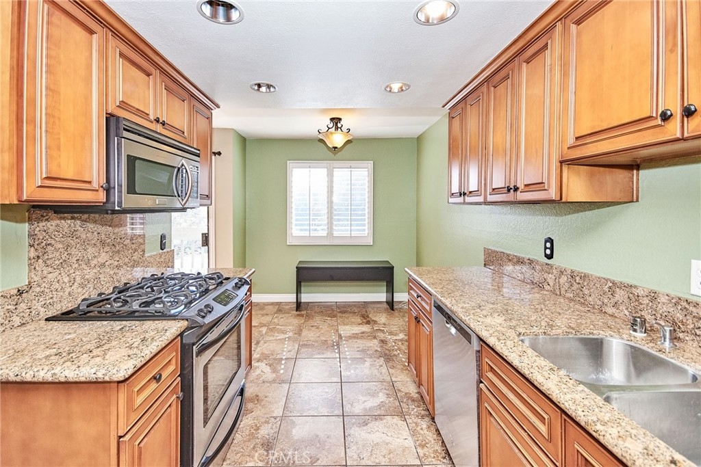Great Townhouse at Los Coyotes Village Townhome in the heart of Buena Park. Close to Prestigious Los Coyotes Country Club. End Unit. This home has two bedrooms including the master suite and both with mirrored wardrobes, plus two full baths both featuring gorgeous granite countertops. The living room with voluminous ceiling fan and ornate mantled fireplace opens to private interior patio. The formal dining room opens to the front deck that overlooks picturesque community surrounds comprised of lush greenbelts and mature trees. The gourmet kitchen boasts gorgeous granite countertops, handsome cabinetry and stainless-steel appliances plus cozy breakfast nook. Lovely wrought iron detail adorns the staircase leading up to second level bedroom.