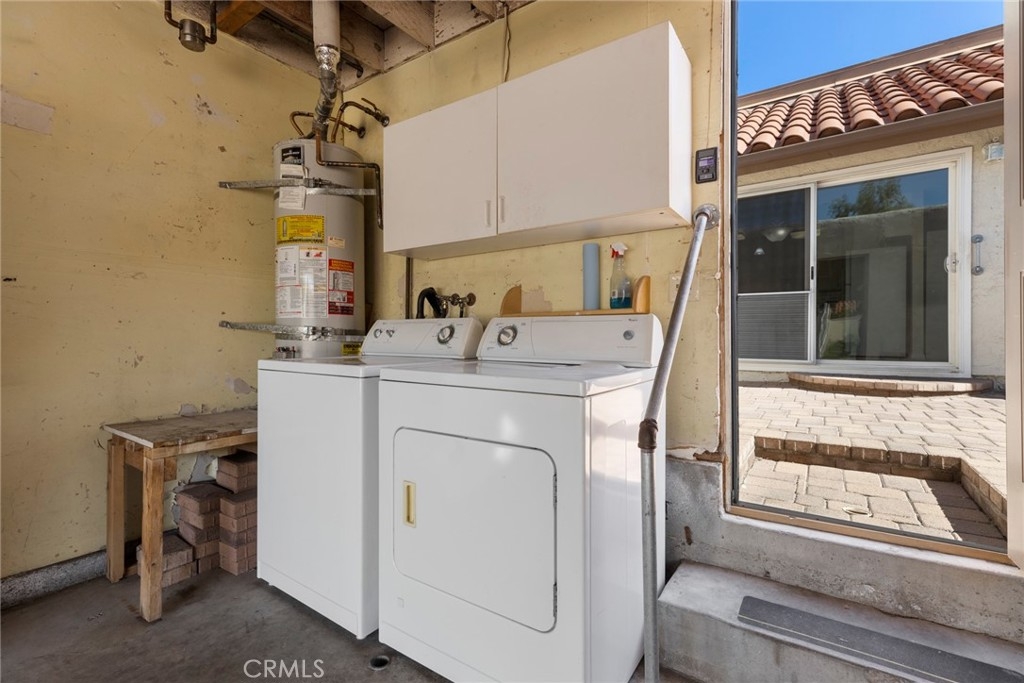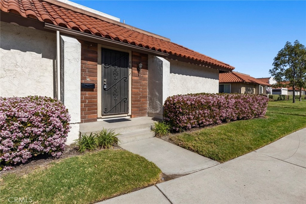 Highly desired one story end unit in the Planned Development of Casitas California located in Buena Park Sunny Hills High School.One adjoining wall is like having your own little house with a lovely cement pavers patio leading to a two car enclosed garage with private laundry including washer & dryer, enclosed cabinets & shelving. Parking for guests is right at the front door curbside. Newer vinyl windows & paint.Neutral tile flooring throughout except for 2 bedrooms has faux wood flooring. Newer central air & heating unit in hallway. The bath has a large tiled shower with enclosure & vanity has a granite counter top.Solid wood shelving unit included with property in living room. Association dues are $260 per month includes two community pools, clubhouse & gated RV parking. Well maintained exteriors have green belts with mature grass, trees & flowing shrubs. Unit Does NOT back to Beach Blvd & is close to restaurants,car wash,shopping, bus line & other businesses.