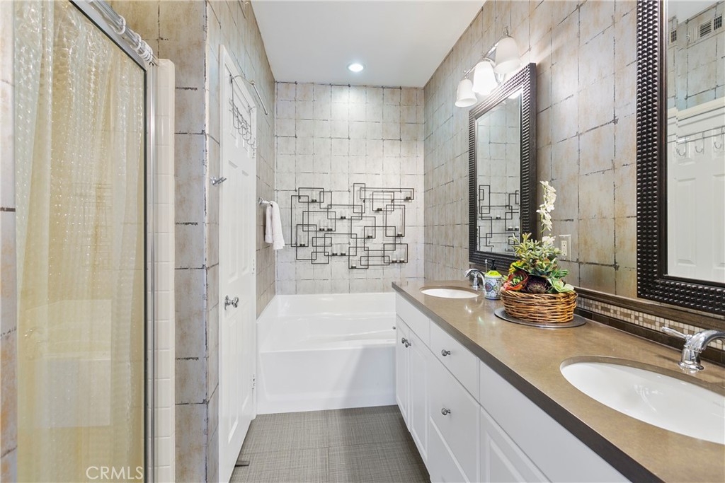 Former model home! Welcome to the highly desirable gated community of Founders Walk. This gorgeous 3 bedroom, 2.5 bath home with a POOL VIEW features an open great room that looks over the living room illuminated by large windows. The kitchen is designed with granite counters, an island, stainless steel appliances, and opens to the family room and dining room. The master bedroom and bathroom feature a ceiling fan, walk-in closet, dual sinks, and a separate soaking tub and shower. Additional features include recessed lighting, plantation shutters, upper-level laundry closet, a direct access 2-car garage. Enjoy the association pool, spa, playground, clubhouse, picnic areas, and private entrance to the Metrolink station. Conveniently located near restaurants, shopping centers, the 5 and 91 freeways, and near award winning Emery Elementary, Beattie Middle School, and Sunny Hills High Schools.