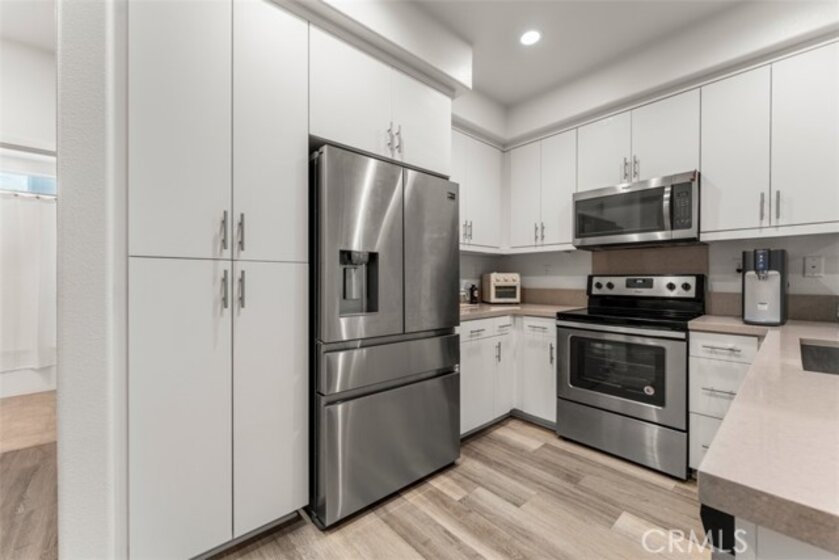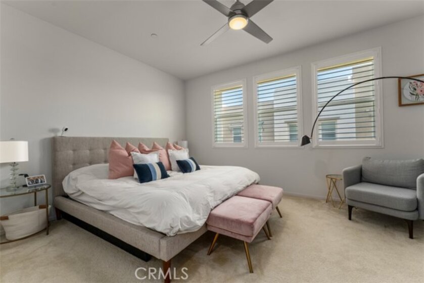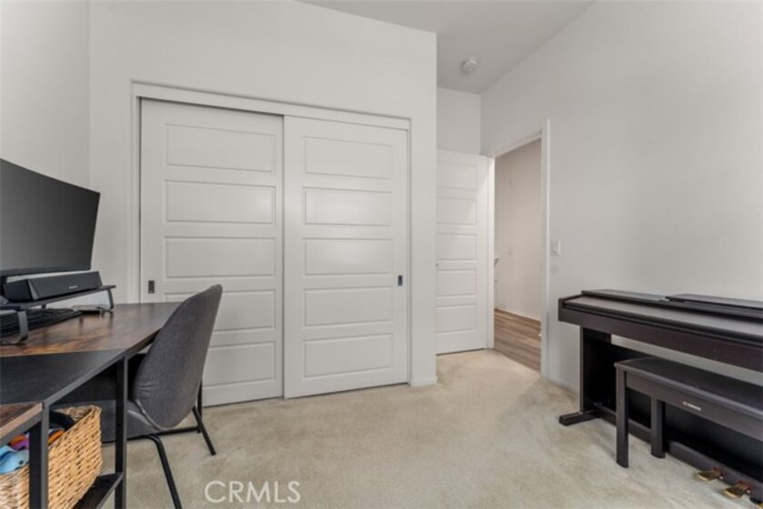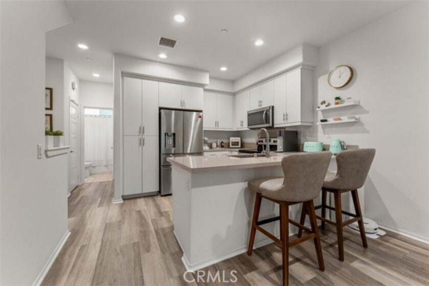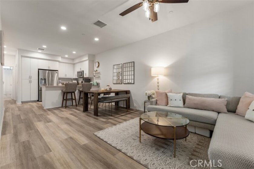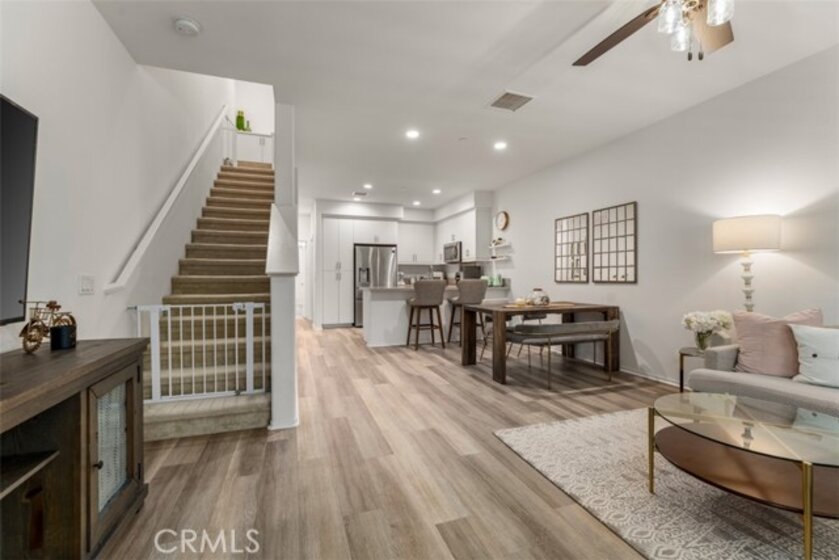 Welcome to Strada Pointe, one of Buena Parks most beautiful, gated, modern town home developments. This nearly new home has an excellent location and spans three levels, featuring three bedrooms and three bathrooms, a two-car tandem garage, paid solar, and Level 2 electric vehicle charging. The first floor offers a formal entry and direct garage access. The second level highlights the open concept living area. It includes a guest bedroom with adjacent full bathroom along with a contemporary kitchen and large living room with outside patio deck. Upgrades include luxury vinyl plank flooring, quartz kitchen counters, LED lighting, plantation shutters. Upstairs, the private third level hosts a primary suite with a dual sink, en-suite bath along with a third bedroom, third bathroom, and a convenient laundry room. Throughout the home, upgrades include window drapes, blinds, ceiling fans, raised panel interior doors, luxury plank flooring. This gated community has excellent resort-style amenities including a pool and spa with cabanas, dog park, BBQ and picnic areas, fitness zone, and playground. With easy access to the 5 and 91 freeways, this stylish townhome offers the perfect blend of modern updates, secure living, and commuter convenience.