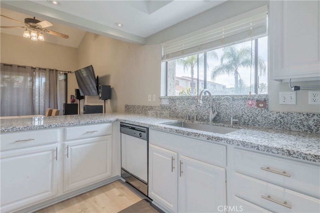 Welcome Home to this wonderfully updated tri-level end unit in the community of Regency East Townhomes Complex. This is a fantastic opportunity for a first time home buyer or to keep it as an investment property perfect located in South Buena Park! Very nice development with lots of greenbelts and trees. This spacious floor plan offers 2 bedrooms and 2 bathrooms with two car attached garage. Upon entering the home you are greeted by warm wood flooring and calming neutral walls creating a cozy place to call your own. The living room features an abundance of natural light with fireplace flows easily into the kitchen, dining area. Thoughtfully upgraded, The dining area opens to the kitchen that features white oak cabinetry, gorgeous granite countertops. Up the newly laminated stairs you will find the bathroom along with bathtub and secondary bedrooms. The Master Bedroom creates a tranquil space including a master bathroom complete with vanity and large dressing area with mirrored closet doors. The front patio for perfect relaxing or BBQ. Association dues include fire insurance, pool, spa ,clubhouse all outside maintenance. Quiet, relaxing community and surroundings are very well kept by association. Convenient location, close to shopping, restaurants, grocery stores, and easy to access freeways. Must See!