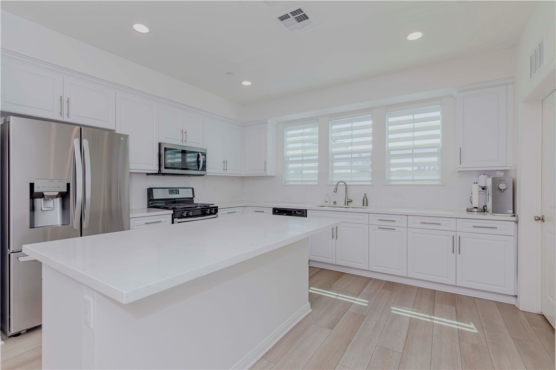 Welcome to 6983 Alderwood Avenue Buena Park! Experience modern living in the highly sought-after gated community of Magnolia Square. This beautifully remodeled home offers 4 bedrooms, 3.5 bathrooms, and approximately 1,802 square feet of thoughtfully designed living space. The entry level features a private bedroom with an ensuite bath, perfect for guests or in law suite. Along with direct access to the 2-car garage, which includes extra storage and a convenient double-wide garage door for easy entry. Upstairs, the expansive great room is filled with natural light and opens to a generous balcony ideal for relaxing & BBQ's. The dining area flows seamlessly into the upgraded kitchen, complete with quartz countertops, stainless steel appliances, a center island, modern white cabinetry, and a spacious walk-in pantry with laundry hookups. A guest powder room completes this level. The top floor is home to the peaceful primary suite, featuring a walk-in closet and a spa-like ensuite bath with dual sinks and a large walk-in shower. Two additional bedrooms share a full bathroom with dual sinks and a shower-over-tub combination. Enjoy the community’s amenities including ample guest parking, greenbelts, a playground, and a BBQ area. Conveniently located near great schools, shopping, dining, parks, and with easy access to the 5 and 91 freeways, this is a rare opportunity to own in the desirable Magnolia Square community. Don’t miss your chance to make this exceptional home yours!
