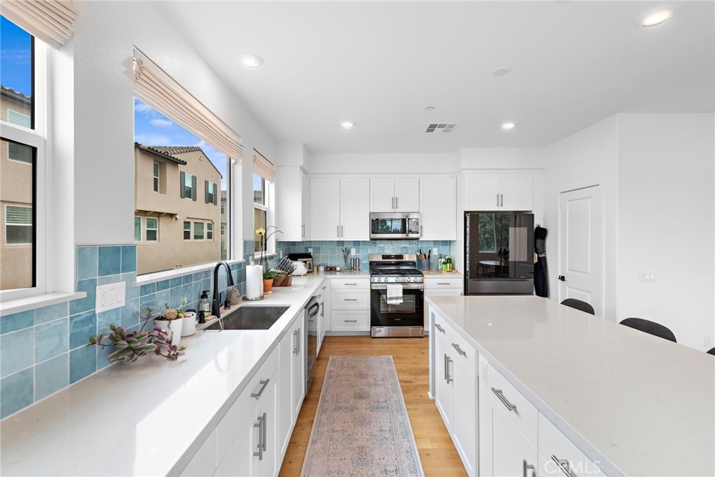 Discover Your Dream Home in Monarch Walk, an exclusive gated community of just 15 beautifully crafted residences. Built in 2024, this stunning end-unit townhome features the highly sought-after Garden floorplan, offering modern elegance, premium upgrades, and thoughtful design throughout. Step through the spacious entryway and make your way to the heart of the home—an open-concept mid-level ideal for both entertaining and everyday living. This level boasts a gourmet kitchen with an oversized island, quartz countertops, Shaker-style cabinetry, smart appliances, and matte black fixtures. The kitchen flows effortlessly into the dining and living areas, which extend to a private deck, perfect for indoor-outdoor living. A convenient powder bath completes the space. Upstairs, you’ll find a tranquil primary suite retreat featuring a walk-in closet and a spa-inspired ensuite bath. Two generously sized secondary bedrooms provide comfort and versatility. Additional highlights include upgraded luxury vinyl plank flooring, motorized window shades, a Nest thermostat, and an energy-efficient tankless water heater. The home also features an Energy Star-certified dishwasher for added convenience and sustainability. Residents of Monarch Walk enjoy access to a beautifully maintained outdoor entertainment area with BBQ facilities and a serene community park. Ideally located near the 91 and 5 Freeways, this home offers unmatched accessibility to top-tier dining, shopping, and entertainment options. Enjoy close proximity to The Source OC, Cypress College, and major attractions like Knott’s Berry Farm and Disneyland. Don’t miss your chance to own a piece of this vibrant community!