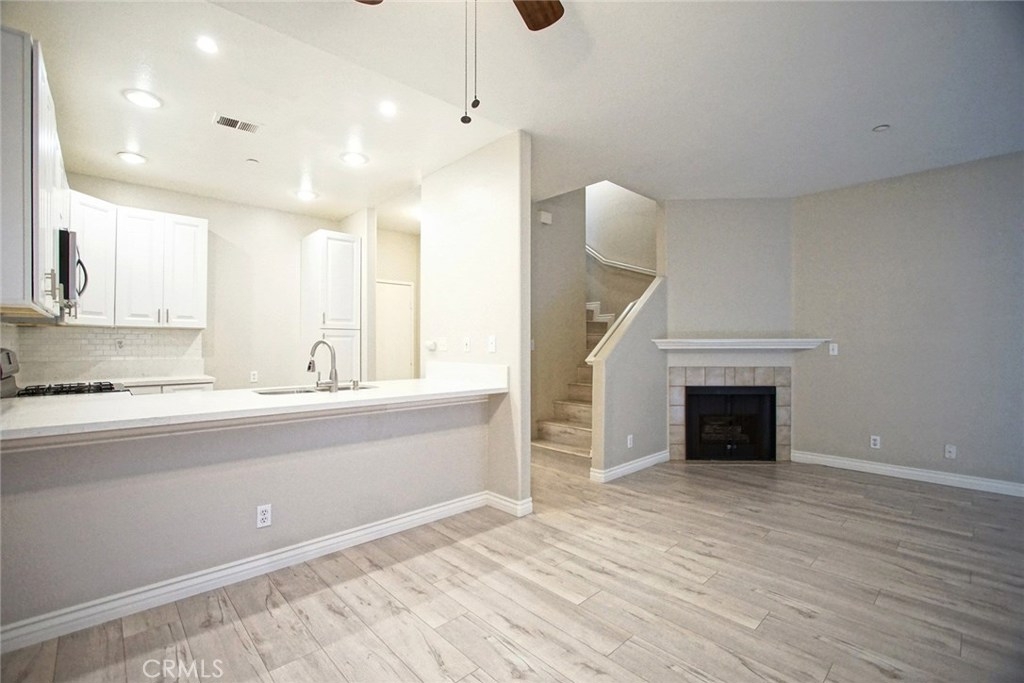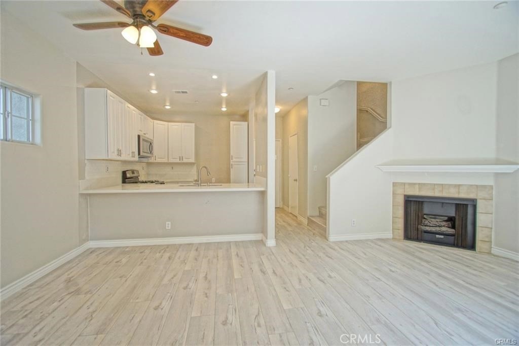 Desirably remodeled two story Town home at secured gated community!! There aren't many homes that has condition and the location for the price like this home! Newly renovated modern interior of Spacious 3 bedrooms with 2.5 bath situated in very private end unit. High quality 12 mm Laminated flooring throughout. Romantic gas fireplace at living room. Open kitchen with quartz counter tops, Top quality Mosaic tile back splash, gorgeous fine quality cabinets with stainless steel appliances, and recessed light. Gorgeous Ceramic tile flooring at kitchen & bathrooms. Master suite with walk in closet, new quartz counter top & new dual sink and faucet, rejuvenated cabinets at both master and second bath. Huge balcony off second bedroom and mirror closet door at 2nd and 3rd bedroom. All high ceiling bedrooms. Inside laundry room/place. 4.25" baseboard throughout. Beautiful French window throughout and French sliding doors at living room off to front patio and bedroom off to balcony. Two car attached garage with roll up remote door. conveniently located near major fwy I-5, nearby shops, restaurant and so much more to enjoy..Must see to appreciate!!