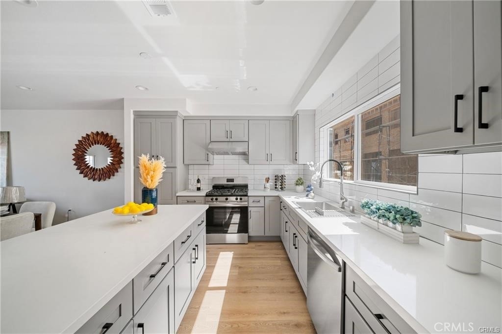 Move-in NOW and lock in this season’s biggest builder incentive! Step into your dream home! This stunning 3-bedroom, 2.5-bath townhome, offering 1,586 sq ft of modern living space, blends comfort with style. Featuring high-end builder upgrades, the home boasts waterproof, scratch-resistant, and fire-resistant wood flooring throughout—designed to endure and impress for years. The open-concept layout fills the space with natural light, creating an ideal atmosphere for both relaxing and entertaining. The chef-inspired kitchen is a standout, showcasing sleek soft-close drawers and contemporary finishes that make every meal a pleasure. Retreat to the generously sized bedrooms, including a spacious primary suite with its own private bath, offering the ultimate in comfort and privacy. Double-pane Milgard windows enhance energy efficiency and quiet your living space, while owned solar panels reduce energy costs and contribute to sustainability. An attached garage, in-unit laundry, and abundant storage add even more convenience to this thoughtfully designed home. Located in the sought-after community of The Nines @ Ninth Street, enjoy easy access to shopping, dining, and major commuter routes. With I-5 just 1 minute away and CA-91 only 5 minutes, commuting couldn’t be easier. Don’t miss out on this opportunity to own a home that blends luxury, convenience, and sustainability.