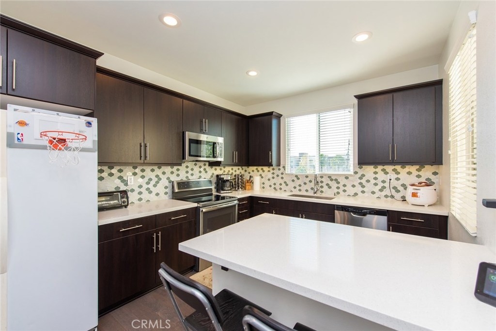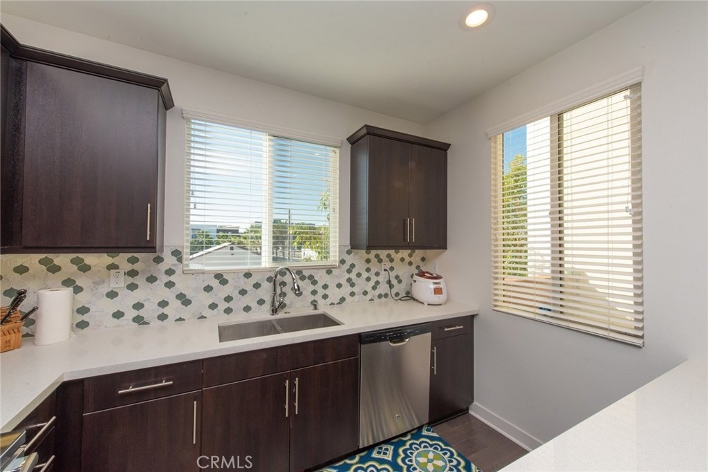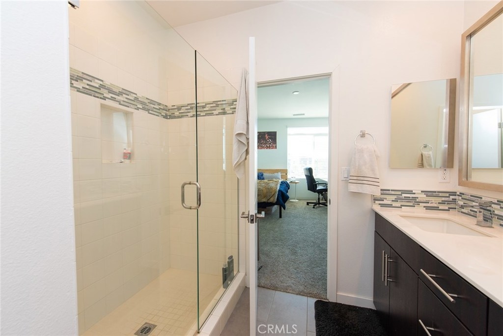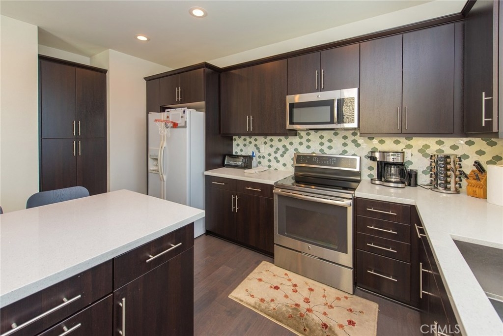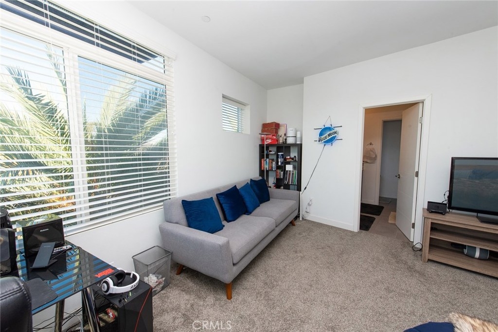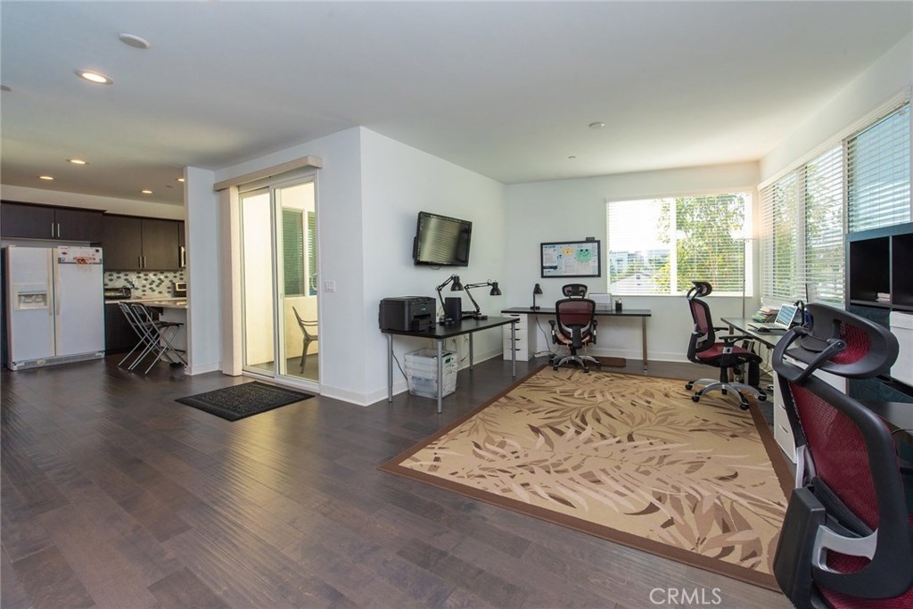 This end unit, the lofts, plan 2 has two large bedrooms plus a big office on the first floor. Each bed has its own private bathroom and walk-in closets. The solar-powered home is move-in ready and the kitchen and baths feature are designer upgrades. Unlike other units, this unit has views open wide towards nearby The Source mall giving modern lifestyle feeling. The Parker Collection amenities include a park with play equipment, a dog park, a swimming pool surrounded by cabanas and an enclosed BBQ area. Closed to 5 and 91 freeways. Easy access or commute wherever you go. Low HOA fee & No Mello Roos tax. Buena Park's newest hot spot!