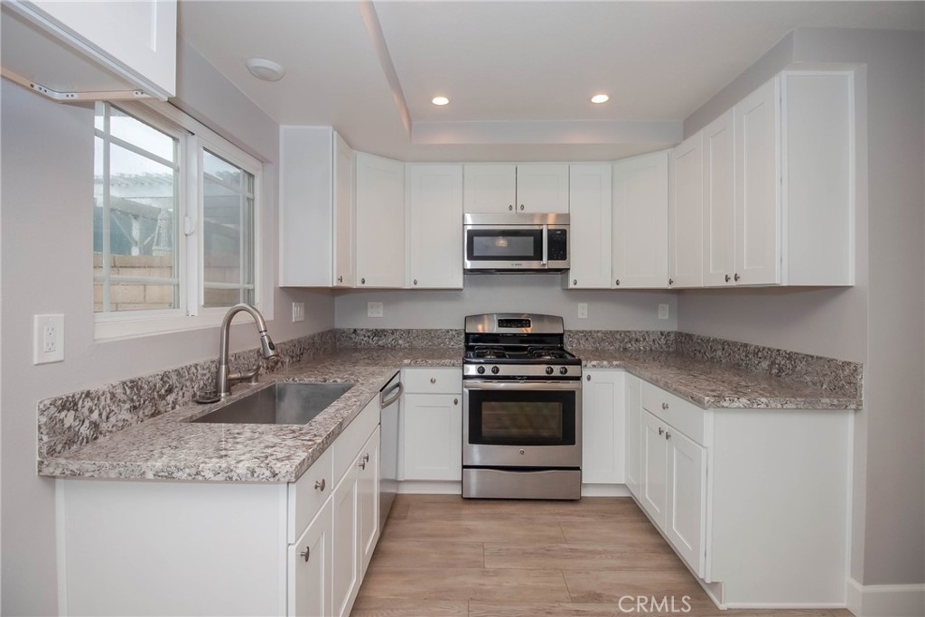 Completely Remodeled turned key Town home 3 bed 2 full bath and 2 car attached garage located in a great quiet part of community with huge green belt in front provides fresh air ***Premium Vinly floor throughout ****Remodeled kitchen, quartz countertop and Shaker white cabinets has newer appliances ****Both bathrooms are completely remodeled with new vanities and stylish designer tiles *****Recess lighting throughout ****no popcorn ceiling throughout*****all doors are New including frames and base board*****Breeze way between the backyard and the garage has a blockwall for safety and privacy with overhead canopy*****Extended master bed closet and the other two bedrooms have mirrored closet doors with closet designed by Closet world ****Two car garage has direct entry via backyard to home has laundry hook ups moved to garage for greater living space and garage has ample storage ****Electric vehicle charging station in garage ****New electrical panels, New switches with USB charger has Dual pane Milgard windows throughout **** Hoa has access to pool and tennis court includes common area maintenance, roof and outside painting. Use of club house at reasonable charge. **House is closed to freeways, Fire station at walking distance including Library ***Must see ************Check out the Virtual Tour https://mls.ricohtours.com/a07232f5-2905-4c02-aa84-27eef89a30db ****************