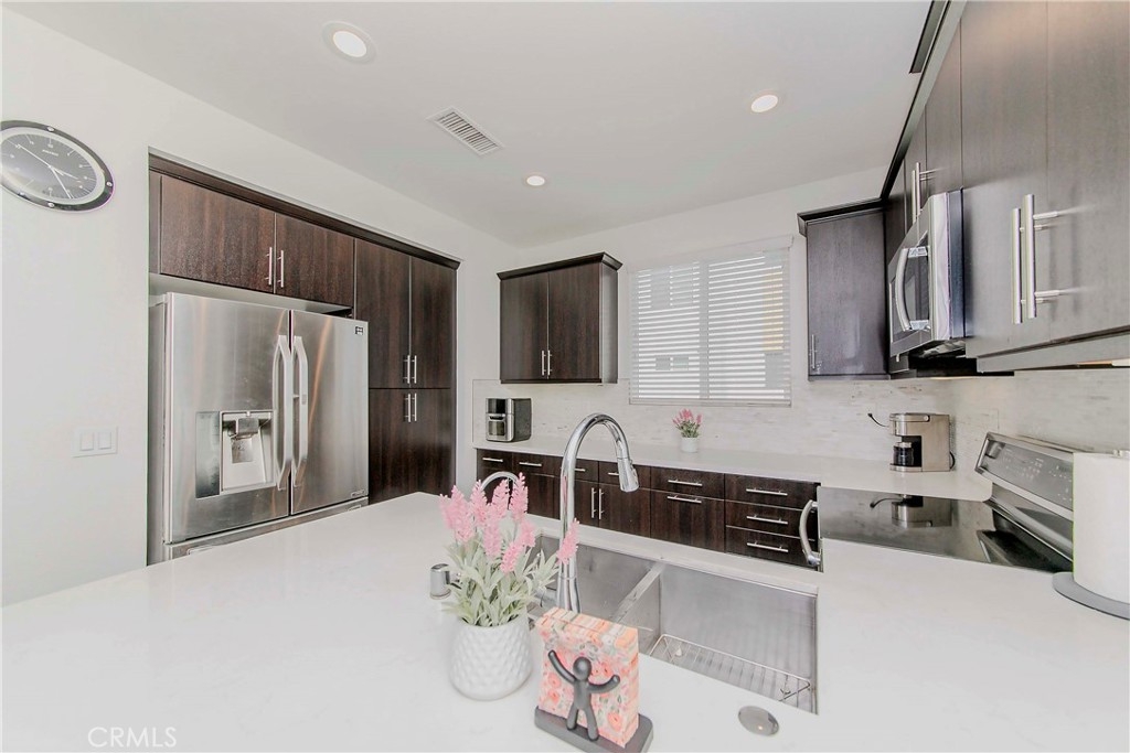 Beautifully Tri Level Condominium Built in 2016...3 Bedrooms and 2.5Bathrooms Spacious open Floor Plan living room. Bright Kitchen with and Spacious Livingroom connected to the balcony. Laundry is in separate room Dryer and Washer and Refrigerator included with Home Purchase. On the Second Level the Open and bright Kitchen. Third Level features the remaining 2 Bedrooms and 2 bathrooms and 1Bedroom is first floor.2Car Garage with direct access. Located close to the Source shopping mall and 5 and 91 freeway.