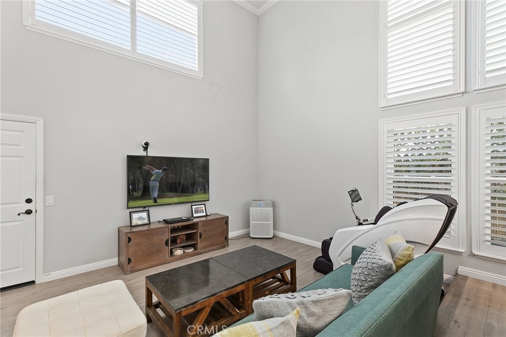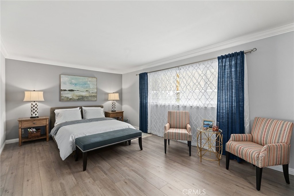 Nestled in the quiet community of Los Coyotes in Buena Park, 8234 Gregory Circle captures the essence of elegant living. Enter into the beautifully appointed open concept living and dining area that is showcased with VAULTED 2 story ceilings. As you enter the updated kitchen you will see bright white cabinets, granite counters & stainless steel appliances. Through the large glass sliders you will find the idyllic California lifestyle that the patio has to offer, perfect for outdoor entertaining. The Downstairs bedroom has a walk-in closet and direct access to the backyard. Gorgeous upgraded flooring throughout including upstairs. Exceptionally large Primary bedroom with a generous walk-in closet and ensuite bath is topped off with a retreat that looks over the downstairs living area. Too many upgrades to list, but here are a few: Crown molding, New wood shutters throughout, tankless water heater, and the best of ALL is the PAID-OFF SOLAR PANELS. Lovely pavers and a stone wall complete the great curb appeal. The home boasts a large 2-car attached garage with direct access which is ideal for drive up/walk in access. The location is prime, being that it is near the pool/clubhouse inside of the cul-de-sac and just minutes from Beach Blvd with all that it has to offer of restaurants, shopping and entertainment. This one will go quick! Don’t miss out on this gem in Buena Park!