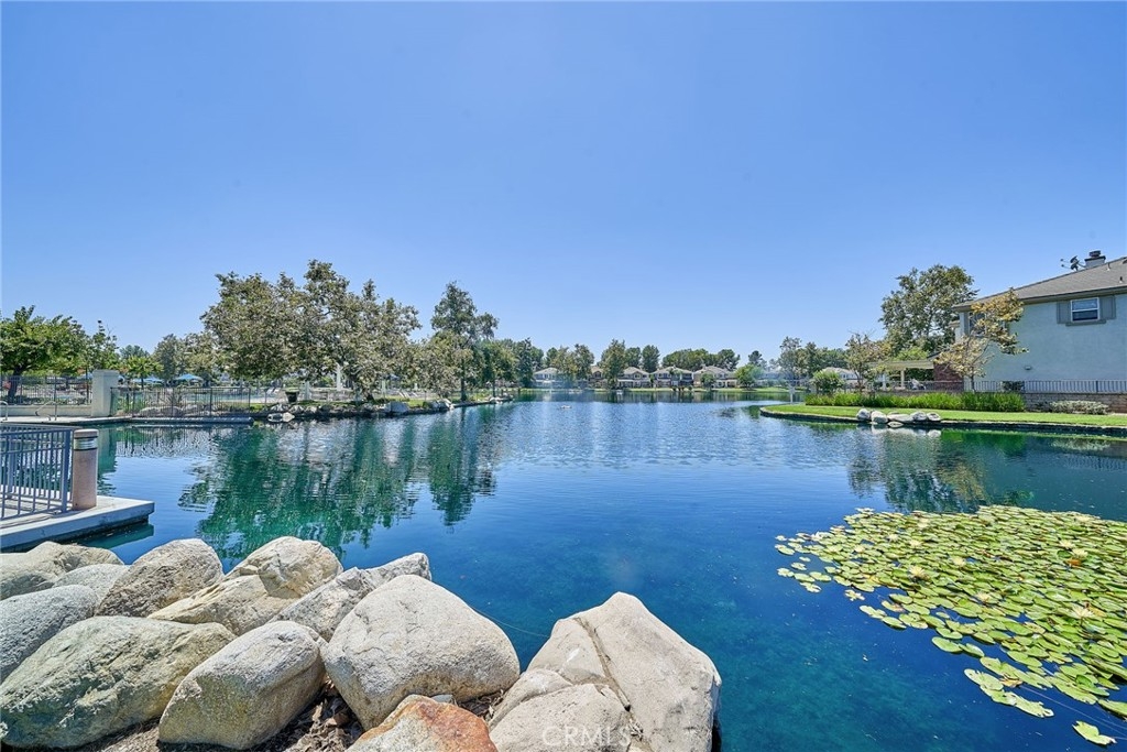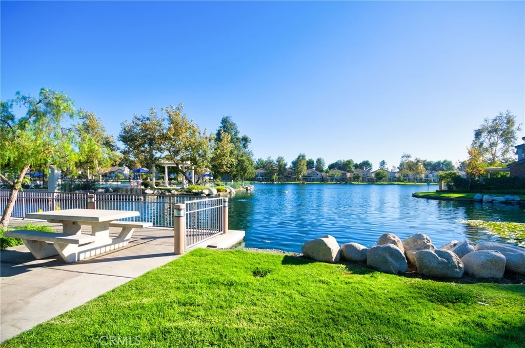Welcome to 9 Coveside Ct, a beautifully maintained tri-level townhouse in the gated Lakeside Villas community. Prime location end unit with direction East- South, this spacious home offers 3 bedrooms and 2.5 bathrooms across approximately 1,513 square feet. The main level features a cozy living room with a fireplace and durable tile flooring, seamlessly connecting to an open family room and an eat-in kitchen. Upstairs offers three comfortable bedrooms and a convenient indoor laundry closet, with easy-to-maintain tile & laminate wood flooring throughout. The attached two-car garage provides ample parking and storage, while central air conditioning and heating ensure year-round comfort. Enjoy resort-style living with access to community amenities including an 8-acre lake with paddle boats, junior Olympic pool, spa, clubhouse, playground, basketball court, and scenic walking paths. Located close to shopping, dining, Metrolink station, golf courses, and major freeways, this home perfectly balances comfort, convenience, and lifestyle.