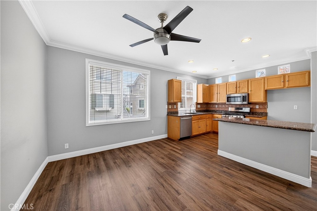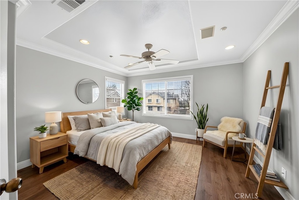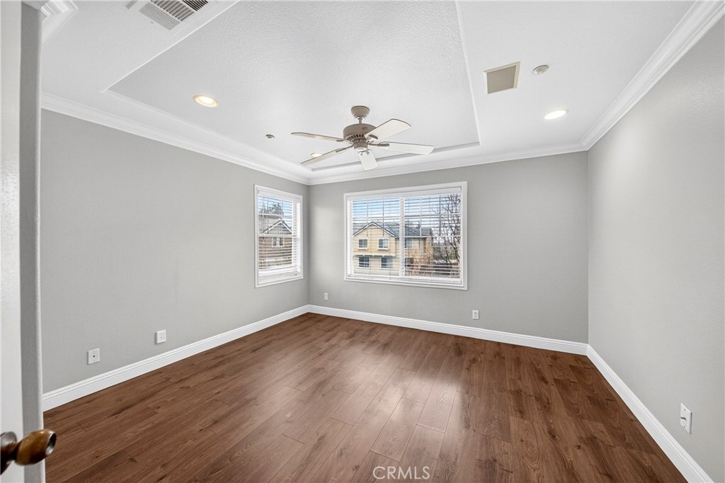 Welcome to 9 Coveside Ct, a beautifully maintained tri-level townhouse in the gated Lakeside Villas community. Prime location end unit with direction East- South super bright home, this spacious home offers 3 bedrooms and 2.5 bathrooms across approximately 1,513 square feet. The main level features a cozy living room with a fireplace and durable tile flooring, seamlessly connecting to an open family room and an eat-in kitchen. Upstairs offers three comfortable bedrooms and a convenient indoor laundry closet, with easy-to-maintain tile & laminate wood flooring throughout. The attached two-car garage provides ample parking and storage, while central air conditioning and heating ensure year-round comfort. Enjoy resort-style living with access to community amenities including an 8-acre lake with paddle boats, junior Olympic pool, spa, clubhouse, playground, basketball court, and scenic walking paths. Located close to shopping, dining, Metrolink station, golf courses, and major freeways, this home perfectly balances comfort, convenience, and lifestyle. HOA cover all exterior including insurance, roof, and trash.